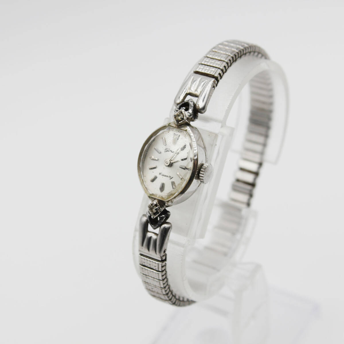 レディース腕時計 手巻き 稼働品 文字盤シルバー 蛇腹 ジャバラ