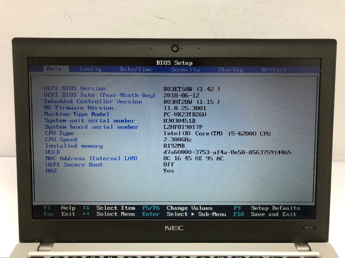 ジャンク/ NEC PC-VK23TBZGU Intel Core i5-6200U メモリ8.19GB ストレージ無し 【K20398】