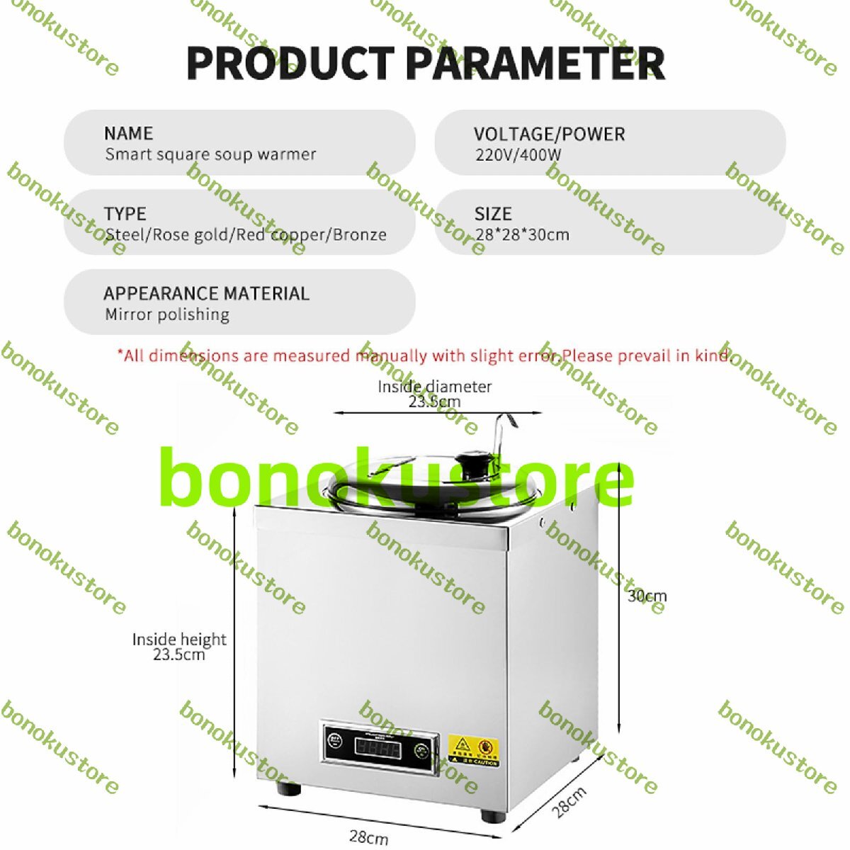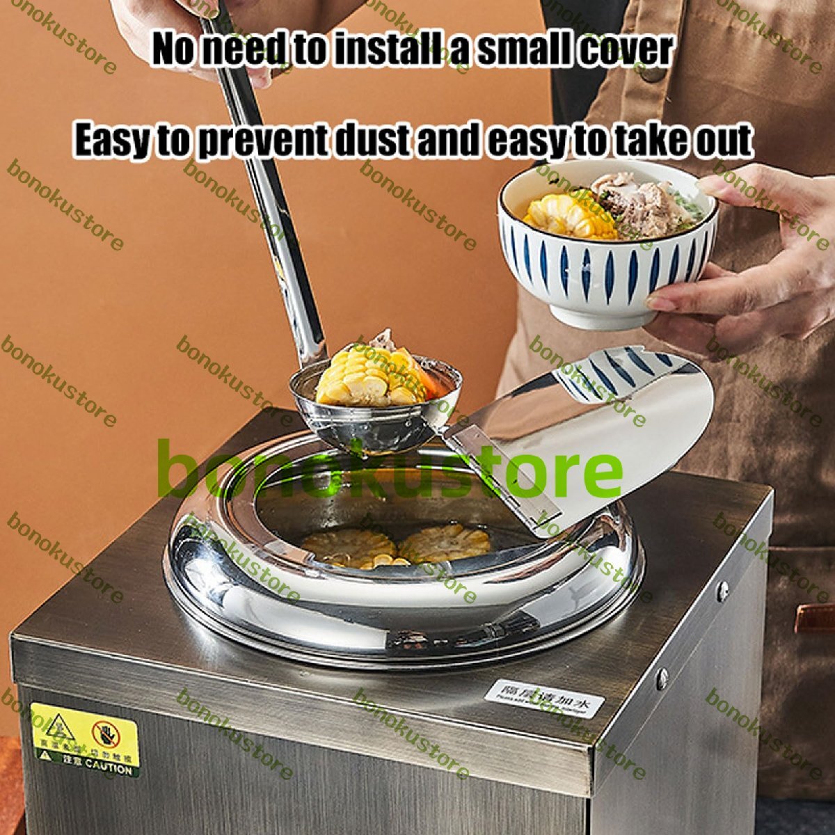 幅広い用途に使用可能:業務用スープポットの加熱部分は綿密に設計されており、広い加熱面積で迅速かつ均一に加熱し、優れた熱伝導性を実現します。プラグを差し込むだけで、優れた加熱効果をお楽しみいただけます。