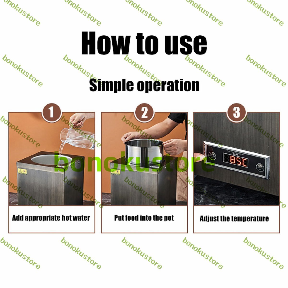 多用途:最適な加熱効果を得るには、内鍋に約1リットルの水を入れてください。この器具は、カフェテリア、シチュー店、ミルクティー店、ホテルなど、さまざまな場所に適しています。チョコレート、タロイモボール、ミルクティー、スープなどの保存に最適です。