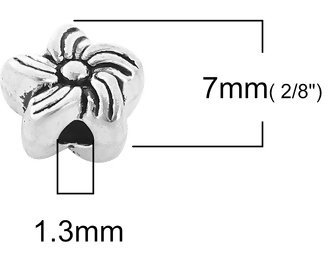 ◆ビーズ/5個入◆合金製/新品◆MADE IN CHINA◆実物と画像では多少色合いが異なります◆メール便もご利用OK!(当店はゆうパケット採用)(※ご利用の場合は必ず配送方法を変更して下さい。)サイズ(約):7mm×6mm 厚4mm 通し穴1.3mm