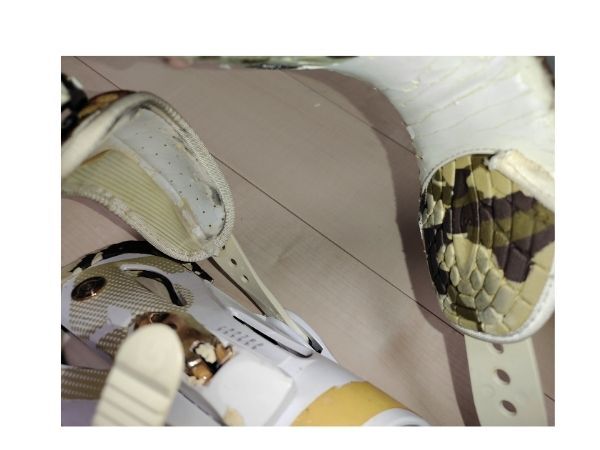 状態:1シーズン2日程度×数年使用後、保管しております。ストラップ内側の人工皮革部分がひび割れております。ハイバックに目立つダメージなし。その他プラスティック部分、バックル動作は問題ないです。