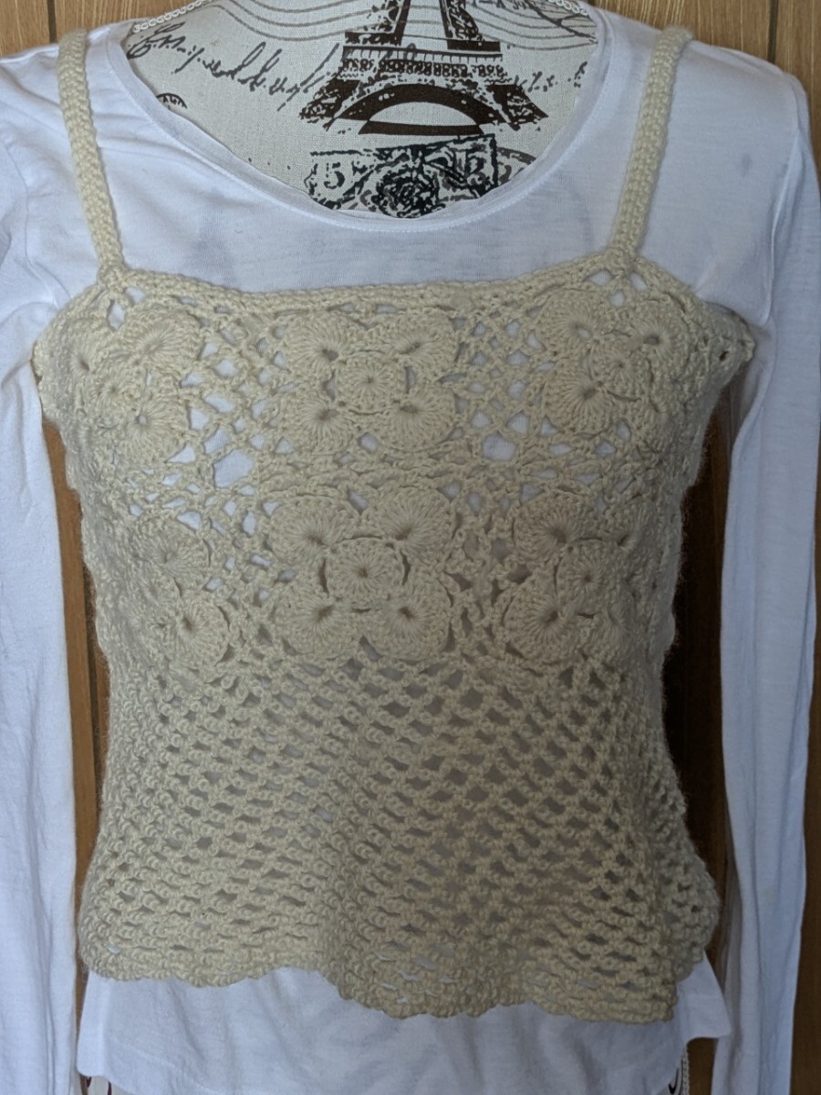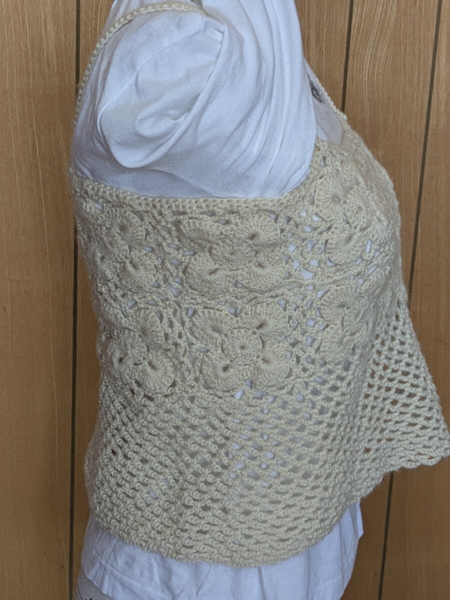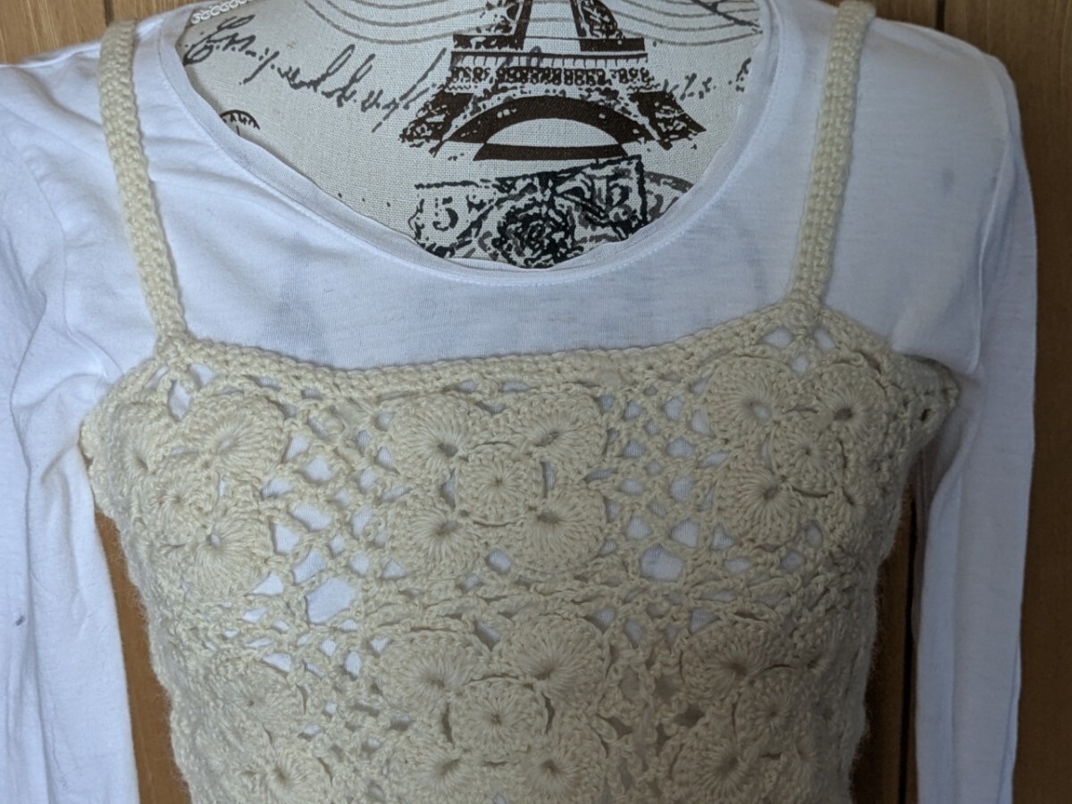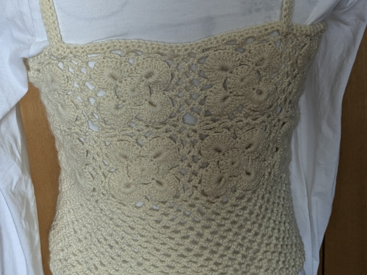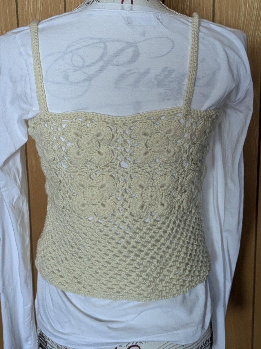 四つ葉のクローバーのモチーフを繋げた可愛らしいタンクトップです。