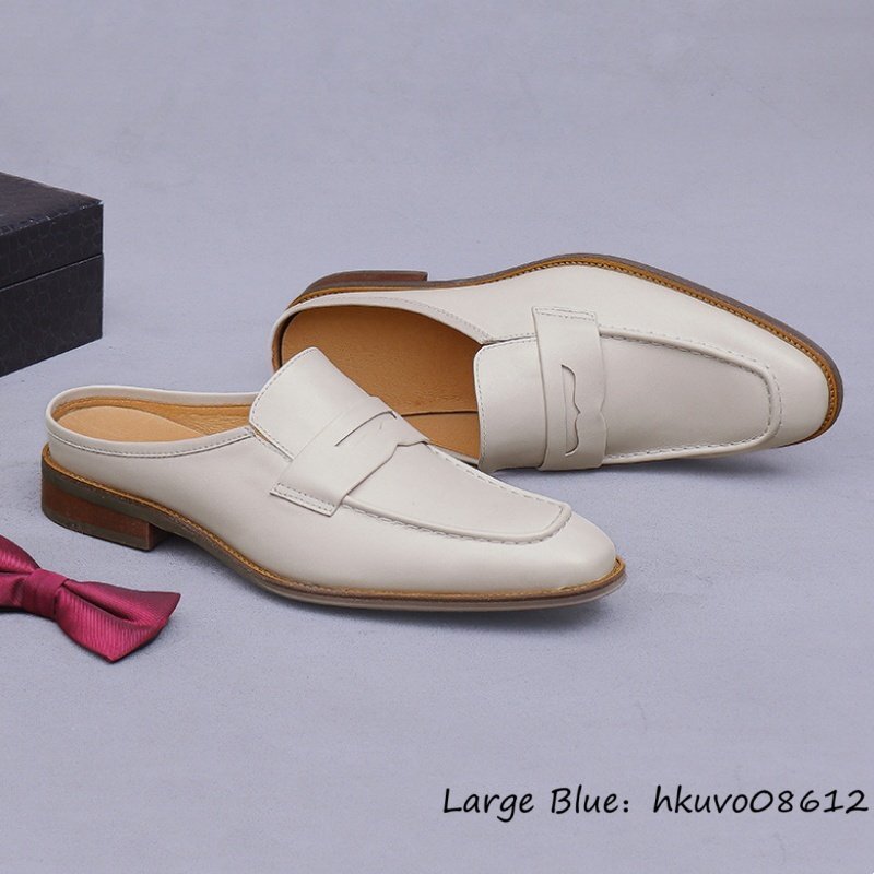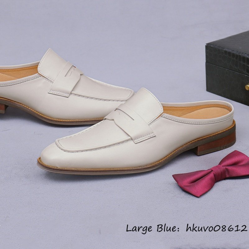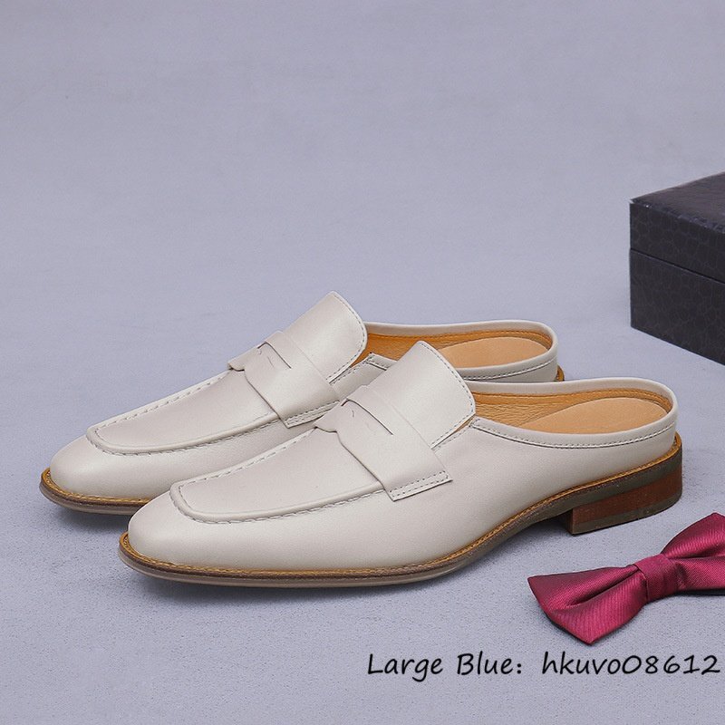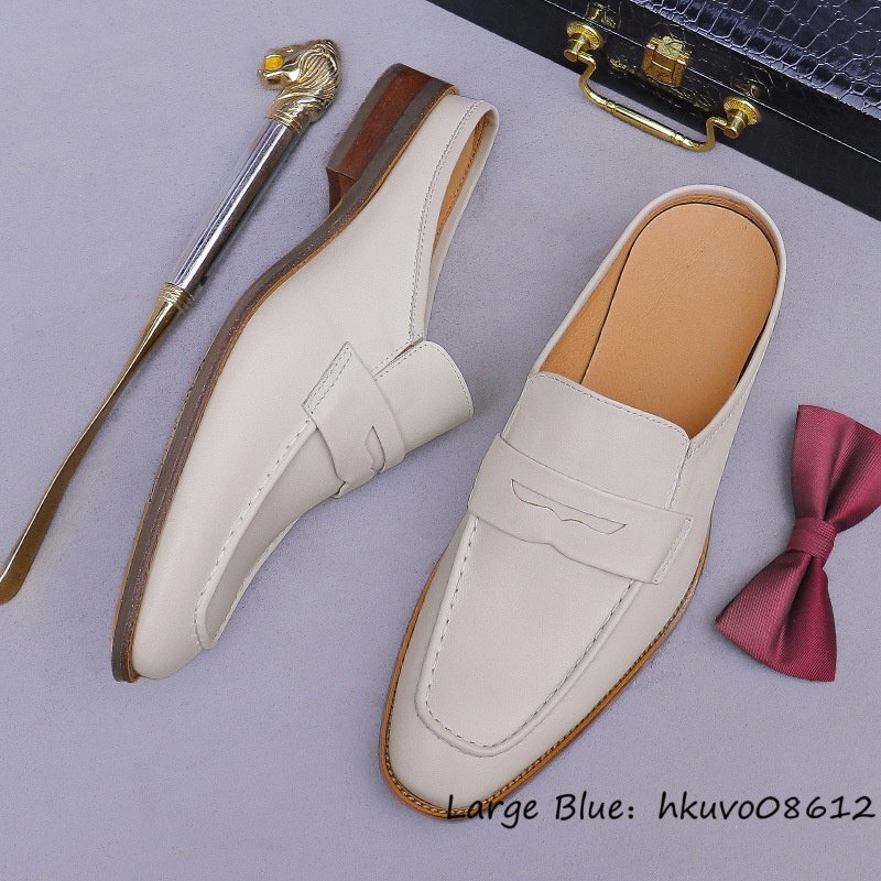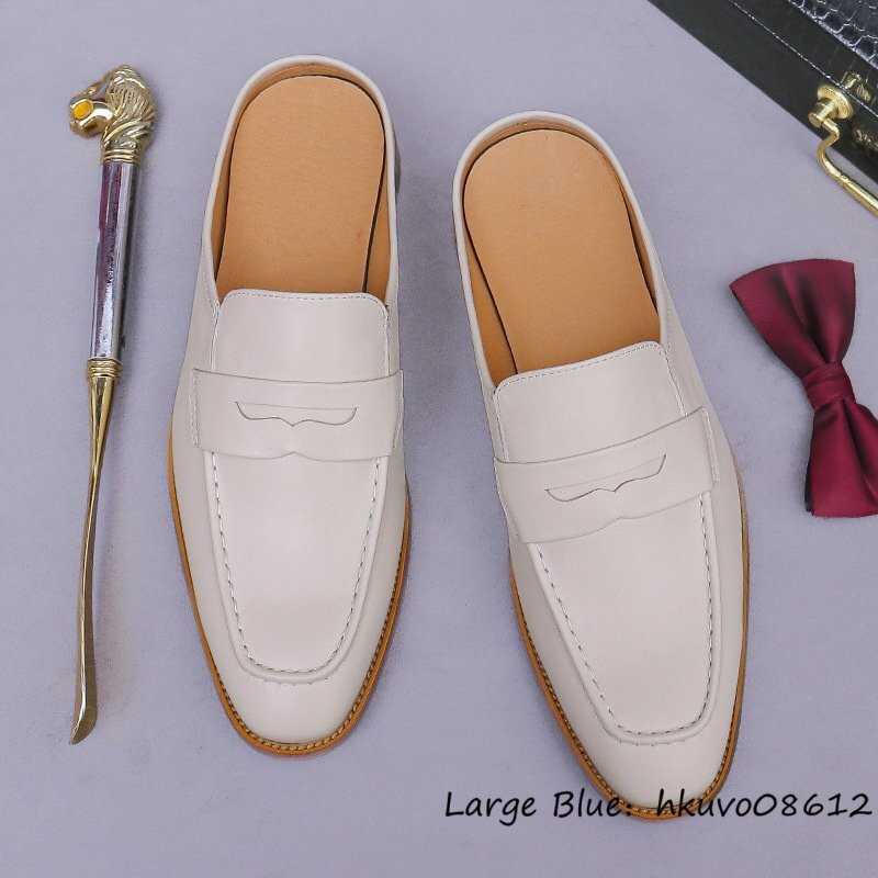 超美品★サンダル 超希少 本革 レザーシューズ 職人手作り 牛革 ビジネスシューズ スリッパ ローファー スリッポン 紳士靴 革靴 27.0cm