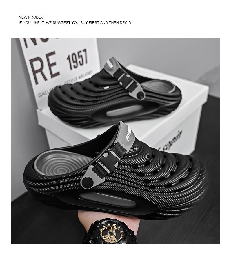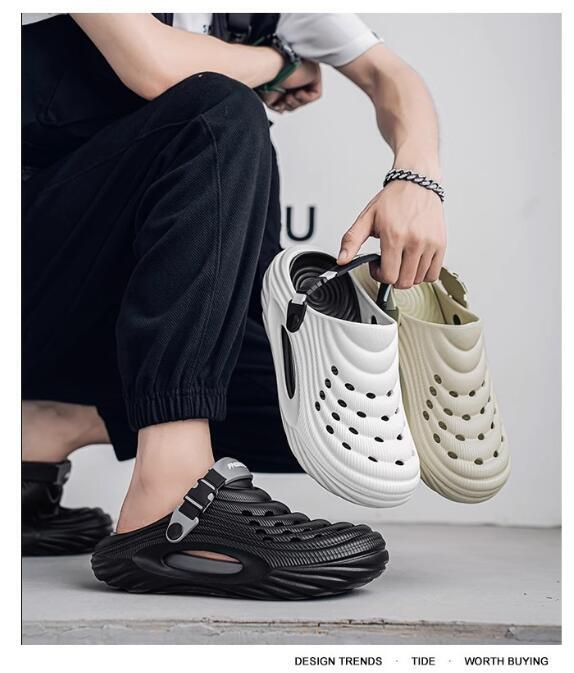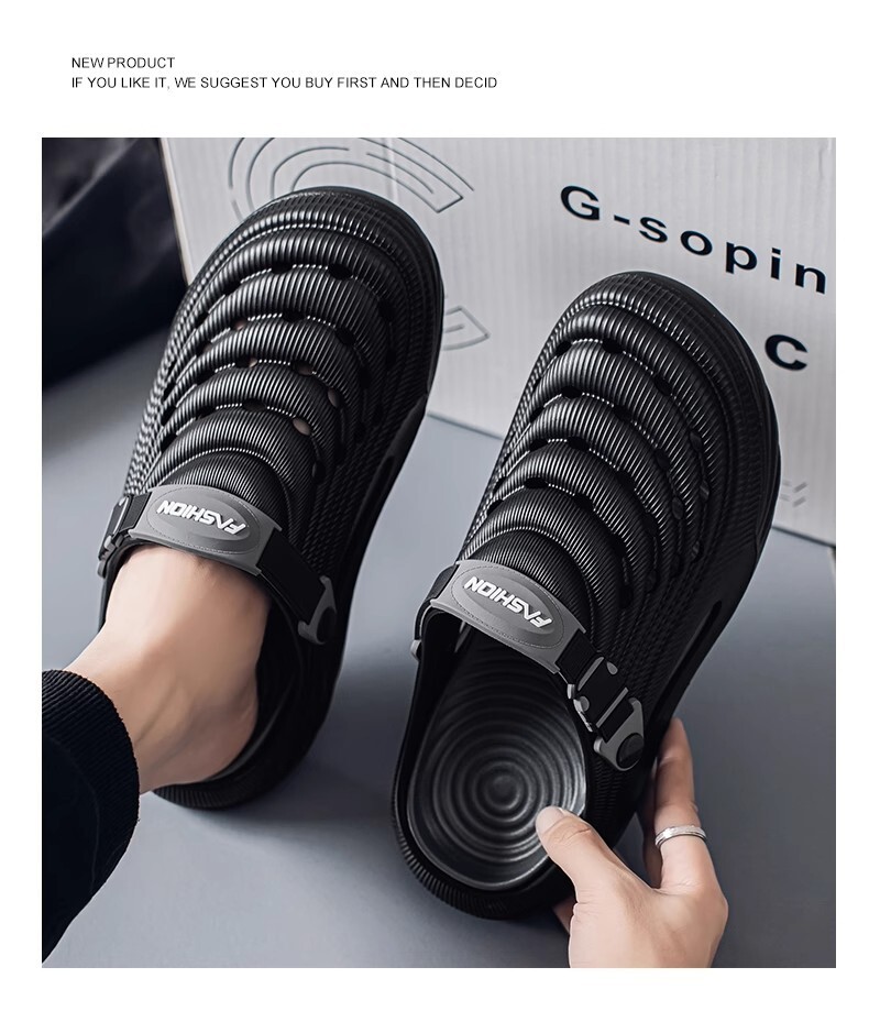 2waysオシャレスリッパ メンズ ビーチ リゾートサンダル つま先保護 防滑 通気 厚底 黒色 サイ ズ選択可