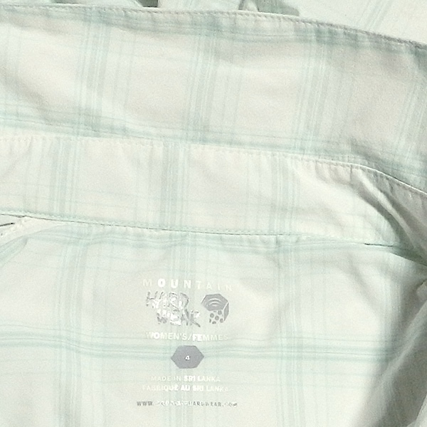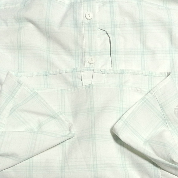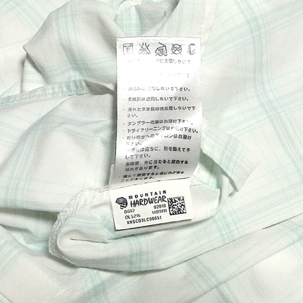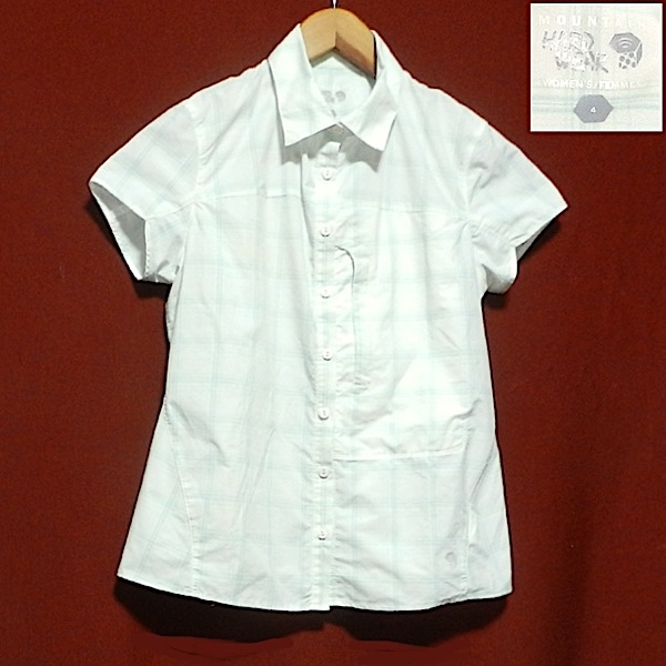 マウンテンハードウェア 半袖シャツ アウトドアシャツ クライミングシャツ スリムフィット 白 緑青 ミントグリーン 小さめ S 〜 M 美品
