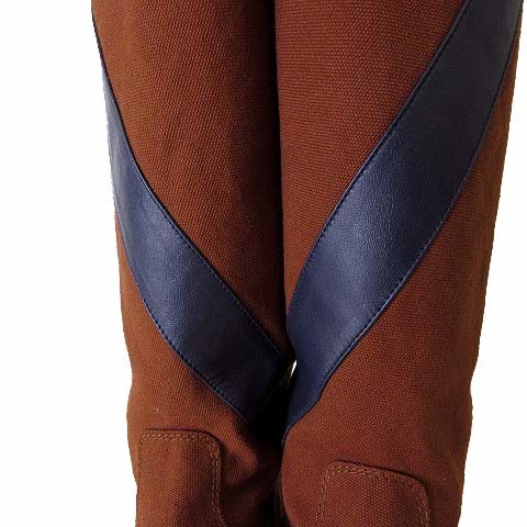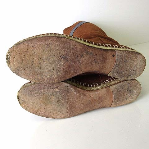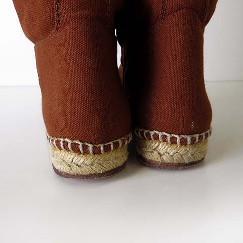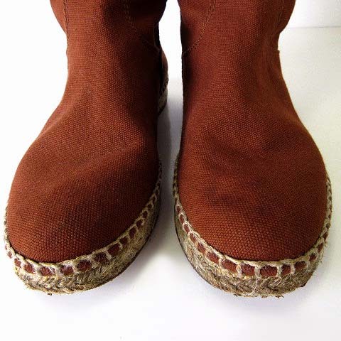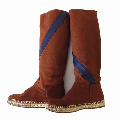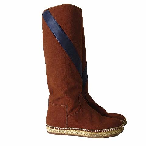 エルメス HERMES ブーツ ロングブーツ キャンバス 本革 レザー ライン エスパドリーユ 38 キャメルブラウン 紺 24cm くつ 靴 シューズ
