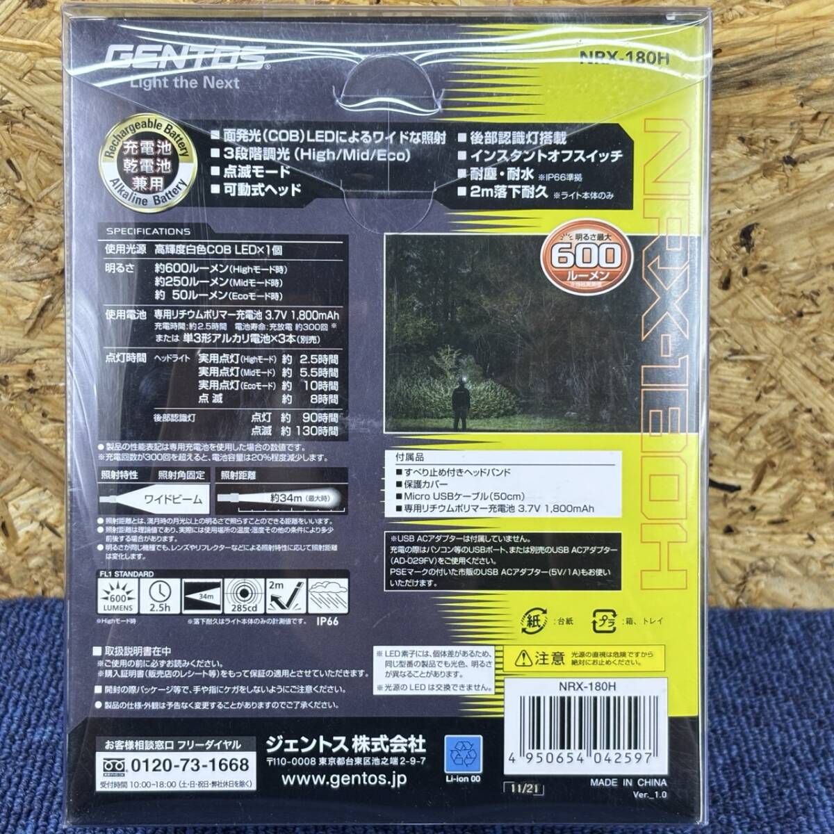 【新品未使用品】GENTOS ジェントス LED ヘッドライト NRシリーズ USB充電式 NRX-180H 600ルーメン 作業灯 ワークライト 照明 A414