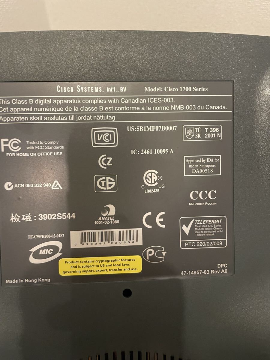 cisco 1700は通電確認済み、ACアダプター付きです。