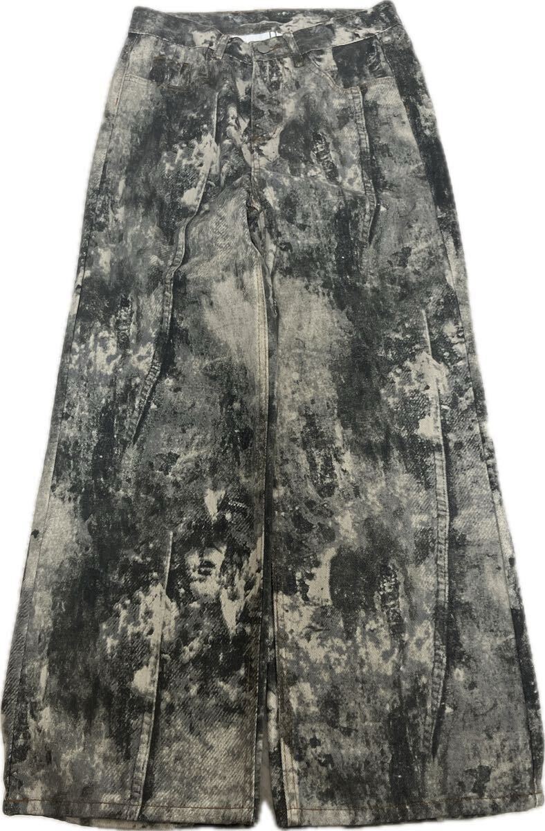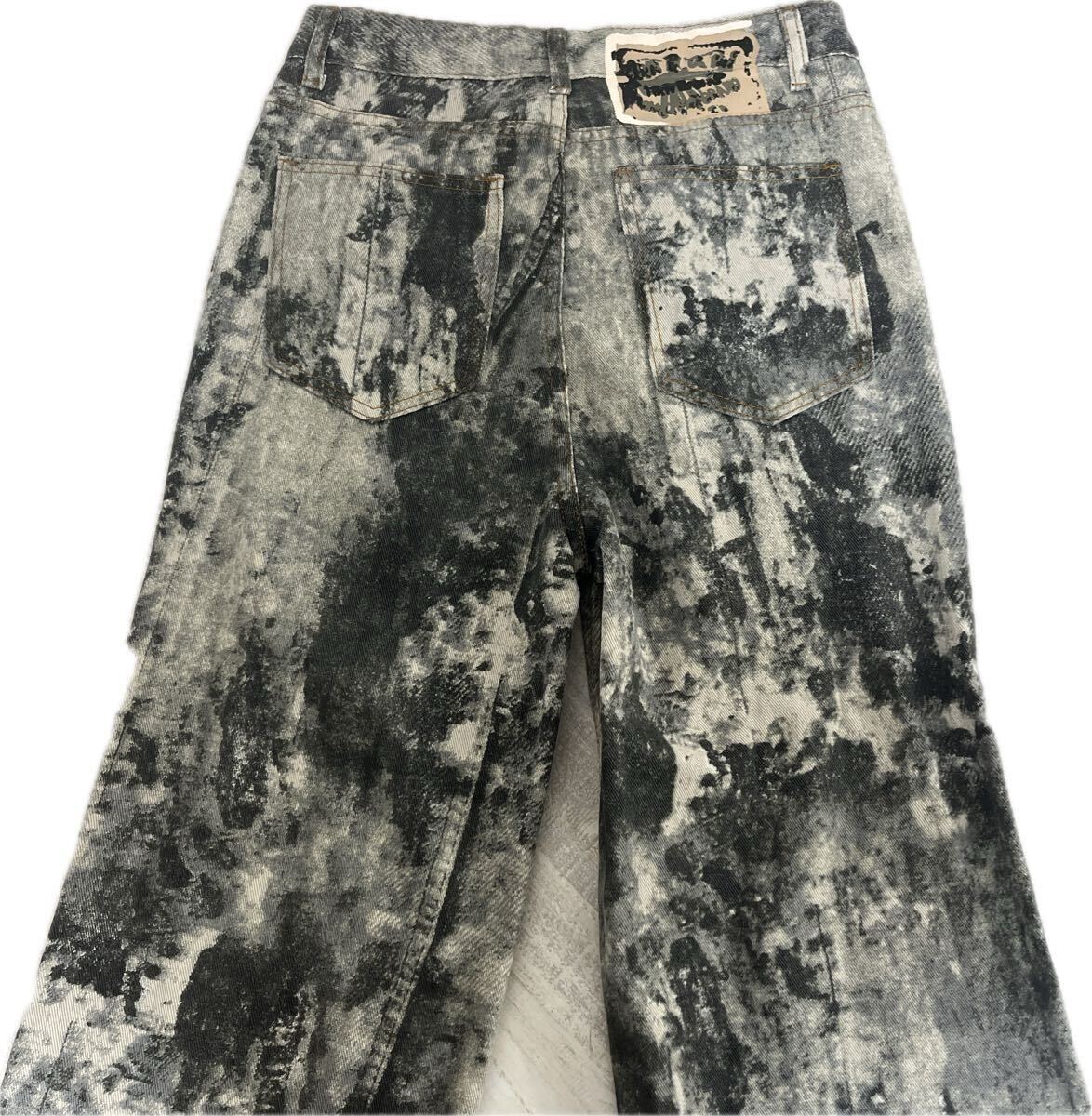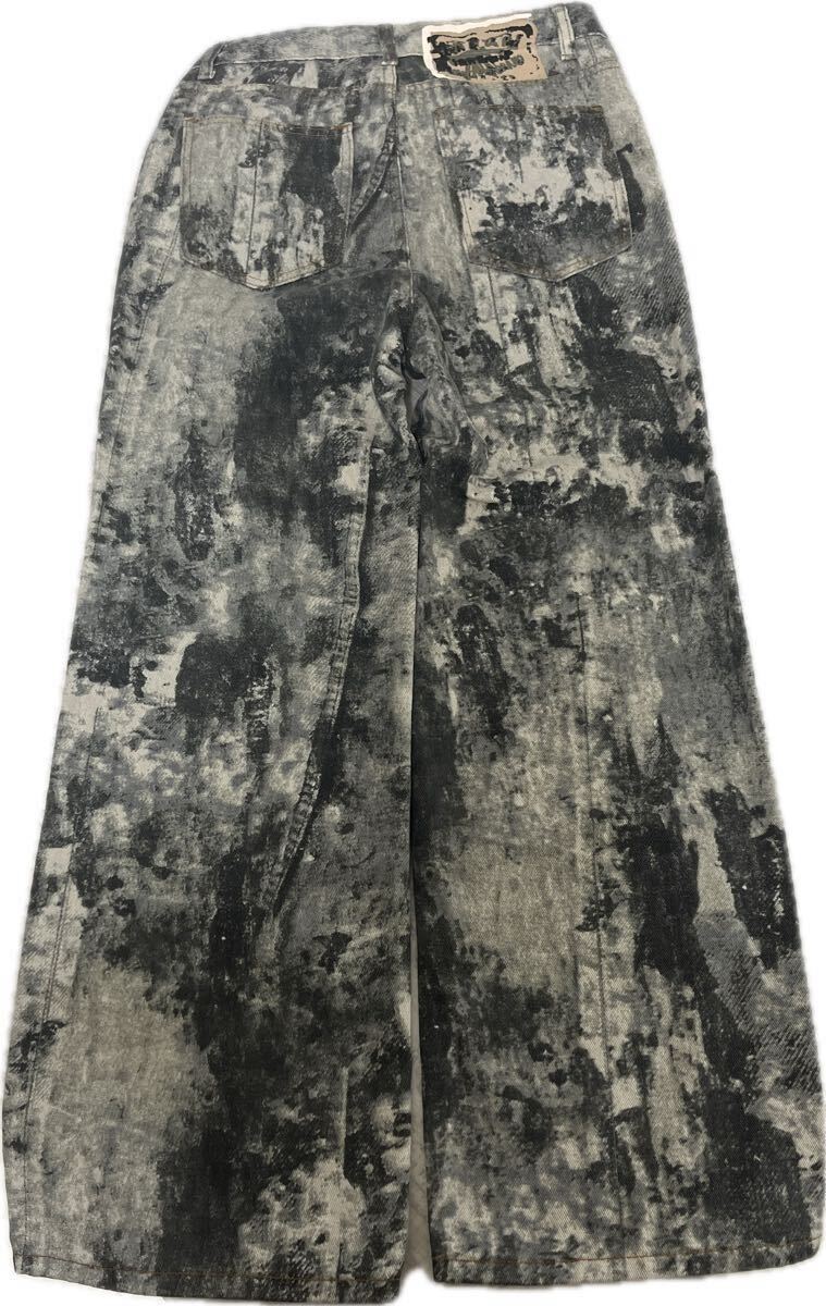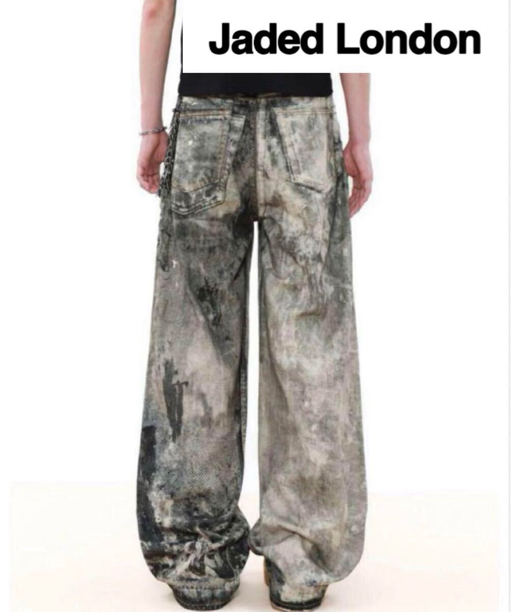 【極美品】menes jaded london 転写 ウォッシュド ワイド バギー デニム パンツ メネス ジェイデッド ロンドン サイズXS 地底人 y2k L2 プリント ブリーチ タイダイ メンズ ヴィンテージ