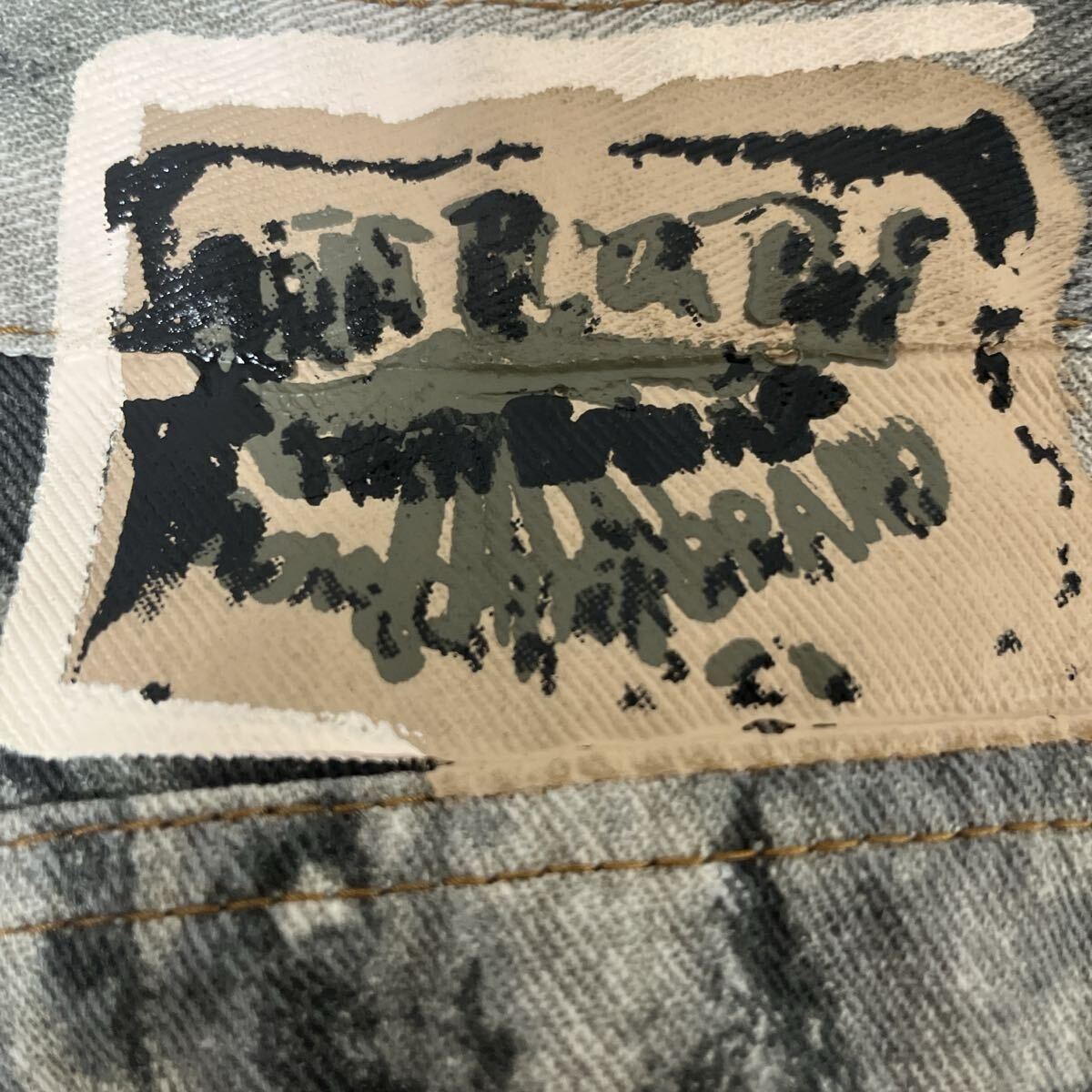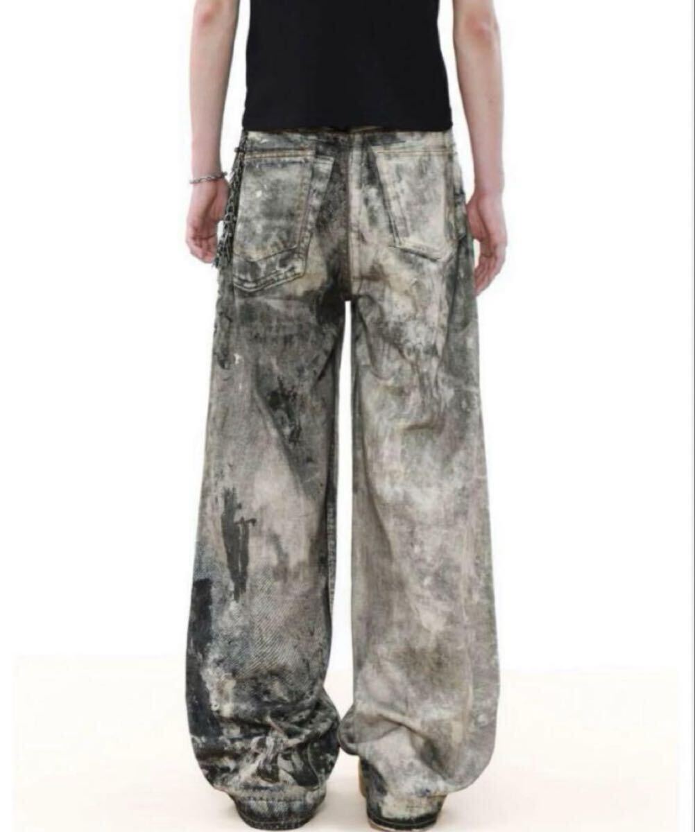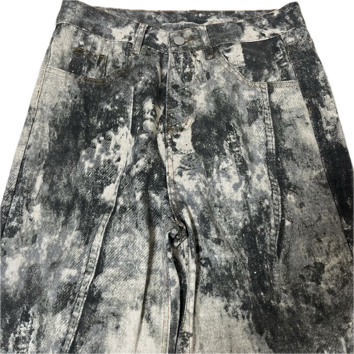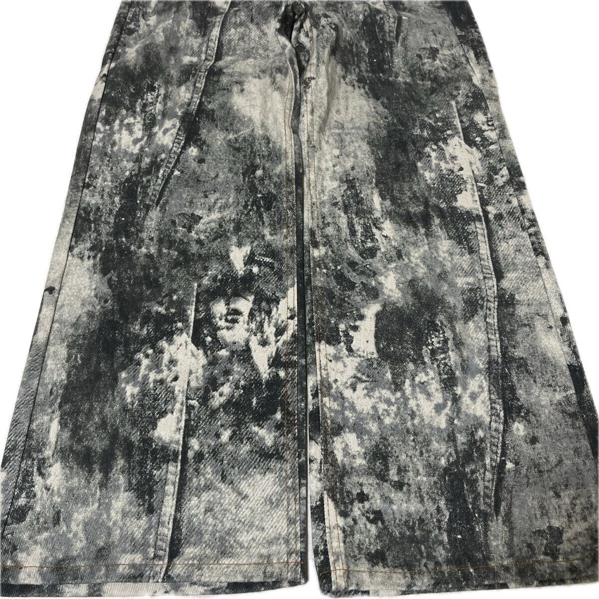 【極美品】menes jaded london 転写 ウォッシュド ワイド バギー デニム パンツ メネス ジェイデッド ロンドン サイズXS 地底人 y2k L2 プリント ブリーチ タイダイ メンズ ヴィンテージ