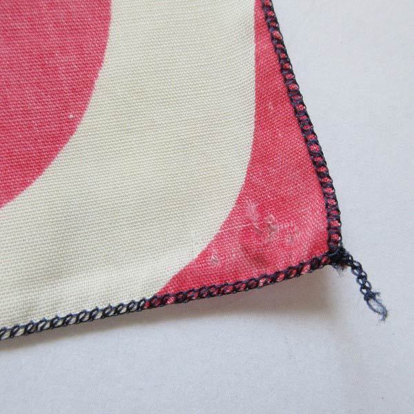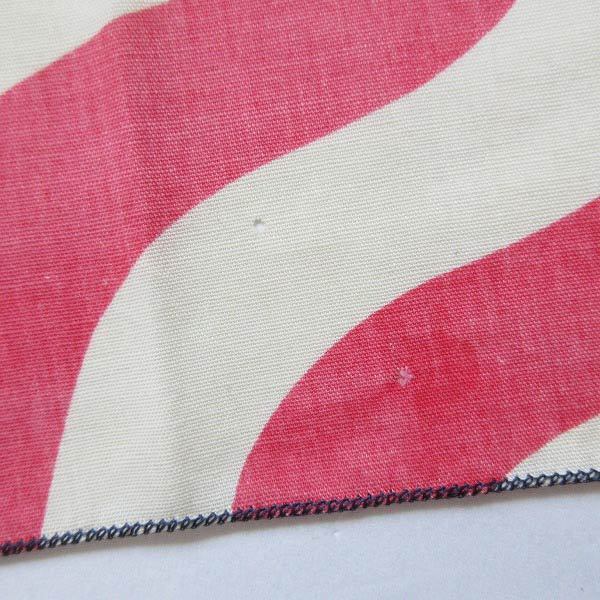 アメリカから買い付けたアイテムです。 1990年代頃のアメリカ国旗モチーフのウェイビー星条旗柄のバンダナです。 50%/50% POLY-COTTON MADE IN USA RN15187 記載のHAV-A-HANK社製。 CRAFTED WITH PRIDE IN AMERICA マーク入りの4辺ロックステッチ入り生地です。 マークや文字記載周りの赤い部分が濃くなっているのはマジックで塗りつぶされた状態です。 角のほつれや小穴、色抜けなどはありますが、まだまだご利用いただけます。 人気のビンテージバンダナです。是非ご検討ください。 |