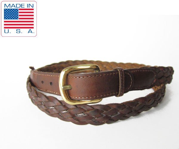 商品名 | USA製/TORINO/編み込み/レザーベルト/茶系【W44~46インチ】カジュアル/本革/メンズ/大きいサイズ/D97 |