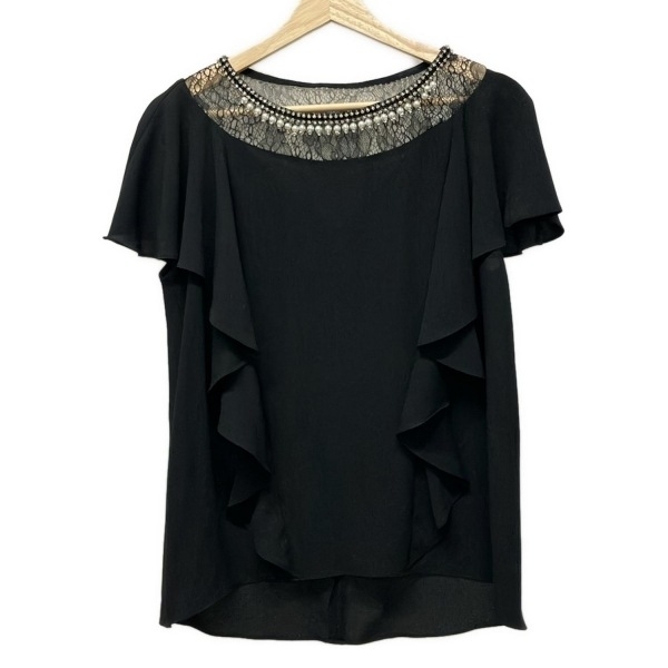 ダイアグラム Diagram GRACE CONTINENTAL 半袖カットソー サイズ36 S - 黒 レディース シルク/シースルー/ラインストーン 美品 トップス