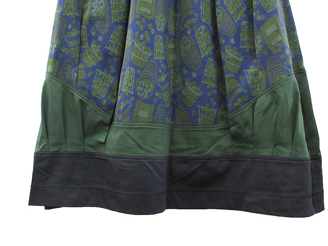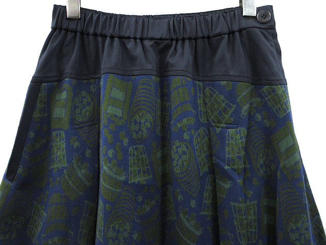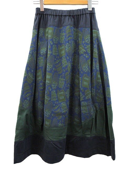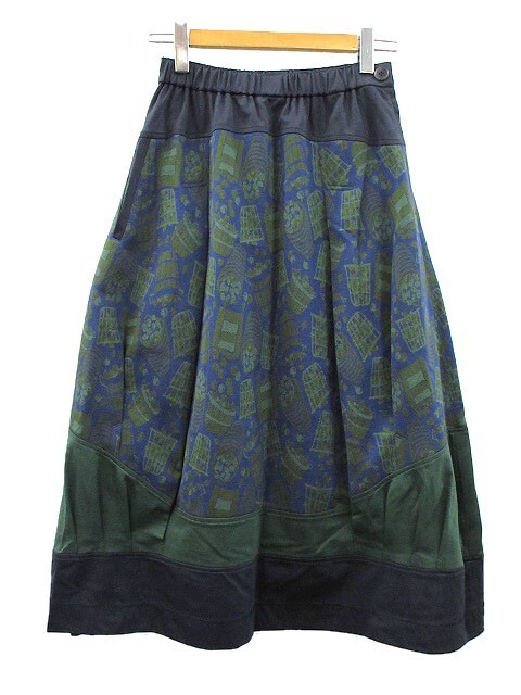 センソユニコ ann吉 あんきち ジャガード 総柄 フレア スカート 38 ネイビー系 ボトムス レディース