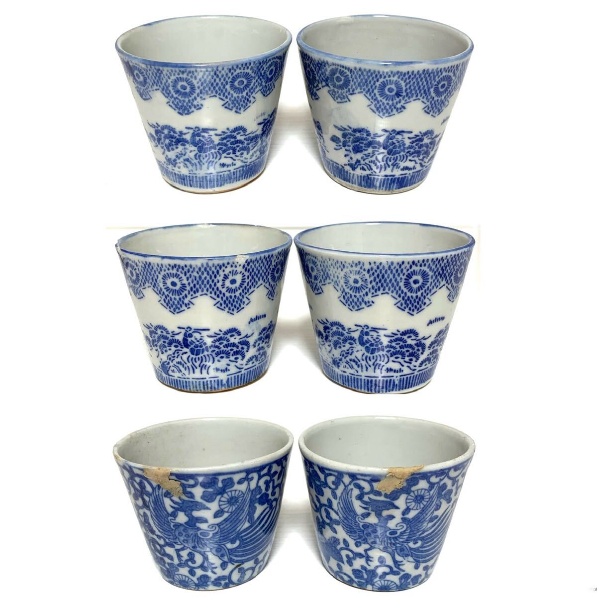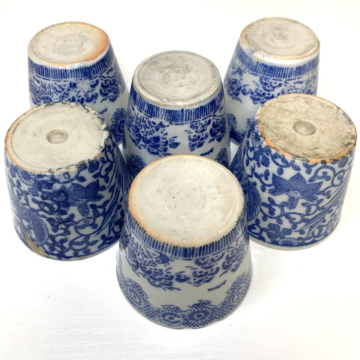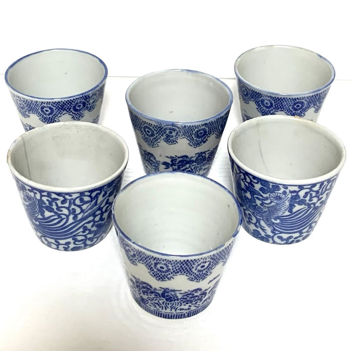 古伊万里 染付 蕎麦猪口 そば猪口 6点まとめて 鳳凰唐草 唐子図 時代物 和食器 陶磁器 アンティーク