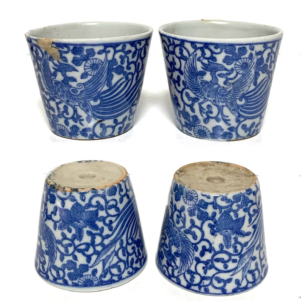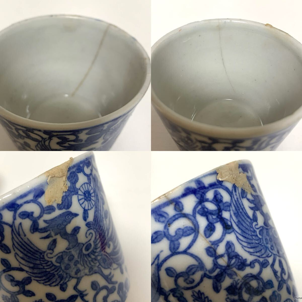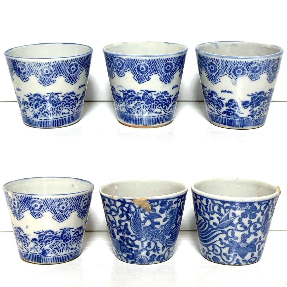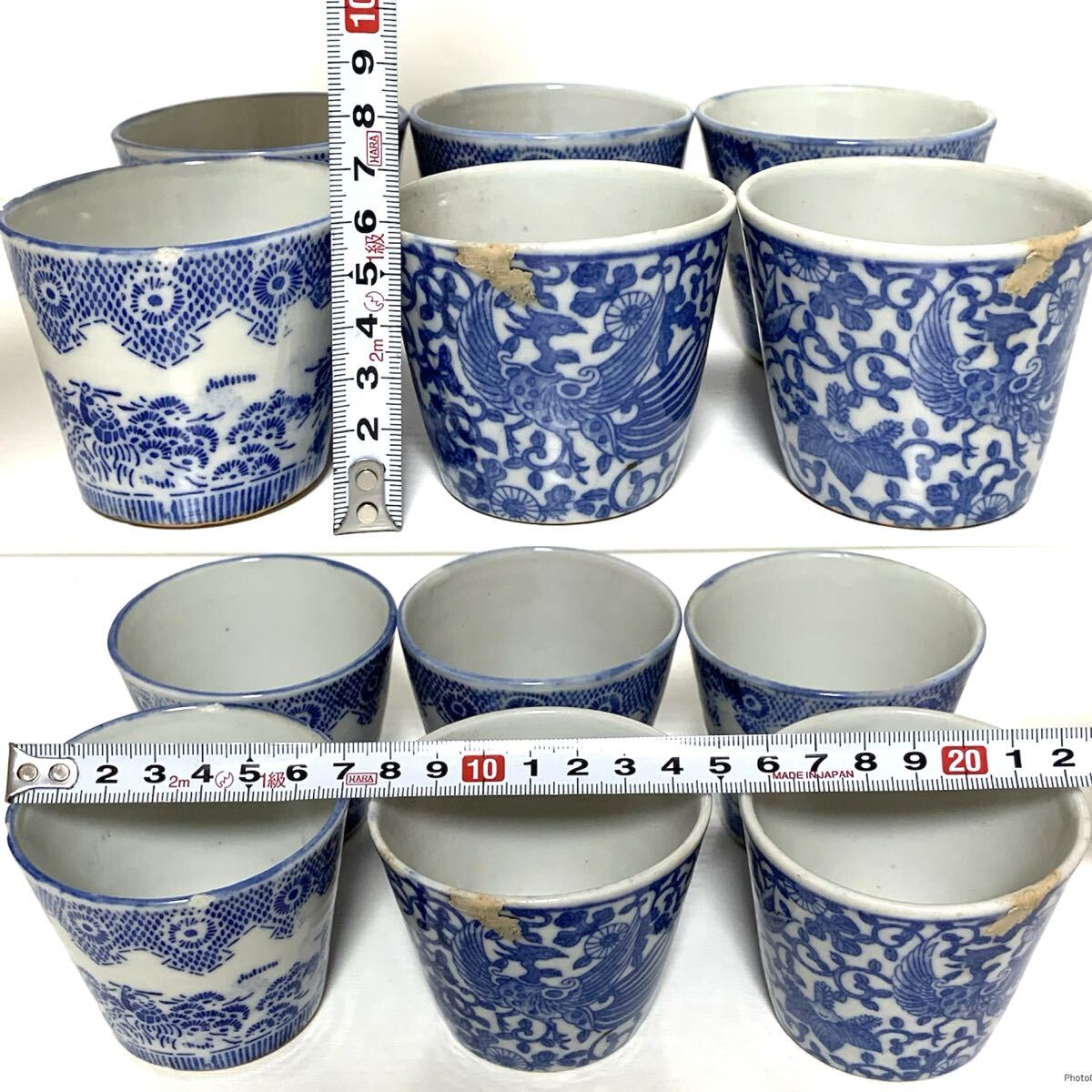 古伊万里 染付 蕎麦猪口 そば猪口 6点まとめて 鳳凰唐草 唐子図 時代物 和食器 陶磁器 アンティーク