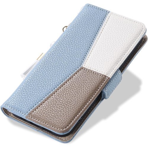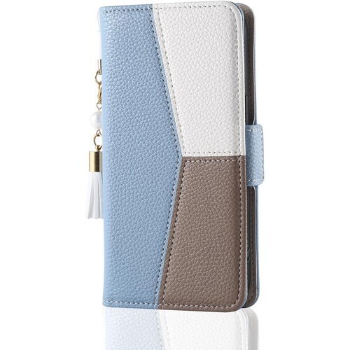 対応機種:AQUOS wish3 ケース対応。高級感が溢れるライチ模様の合皮レザーを使用し、爽やかな三色の無地生地で組み合わせて発色が美しいスマホケースです。キラキラの真珠チャームも付いて派手すぎず、地味である手帳は可愛さが輝きます。