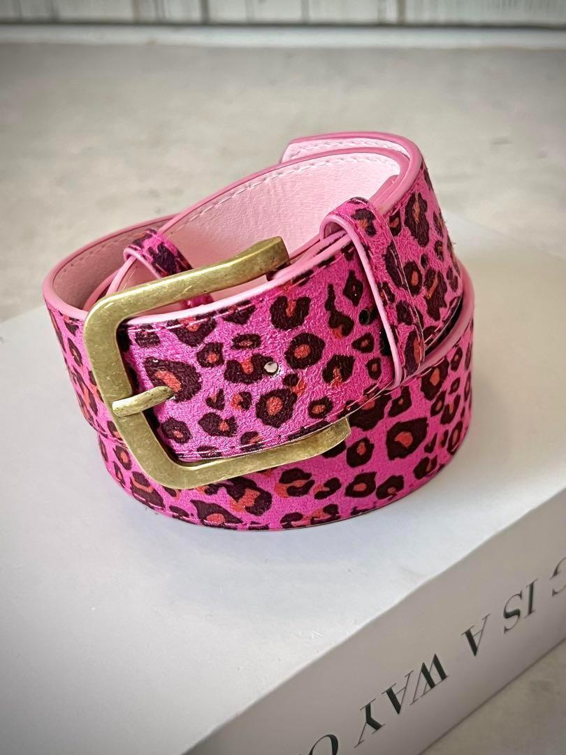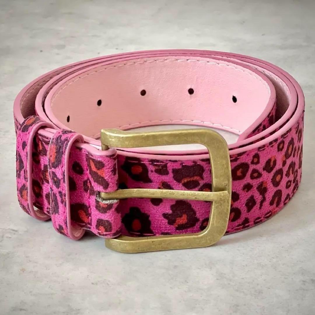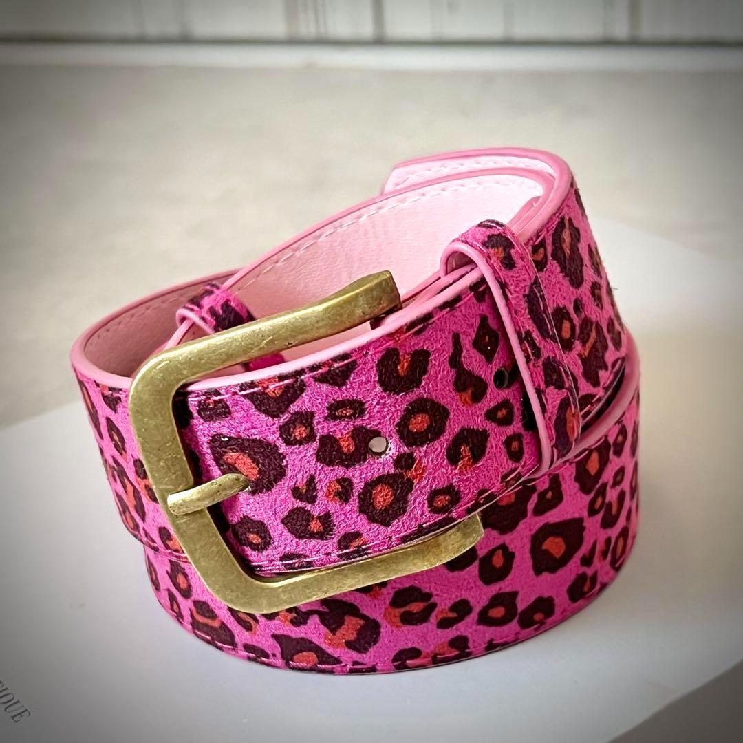 鮮やかなピンクにレオパード柄を施した存在感抜群の太ベルト。アンティーク調のゴールドバックルがほどよいヴィンテージ感を添え、派手かわデザインを大人っぽく引き締めます。Tシャツやワンピースに合わせるだけで、Y2K・韓国ストリート・ギャル系コーデにぴったり。フェスや古着MIXスタイルにもおすすめです。