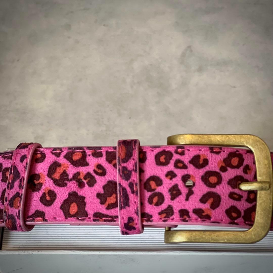 1本で主役になるピンクレオパードベルト。遊び心とトレンド感を兼ね備えたデザインで、いつものコーデをアップデートできます。