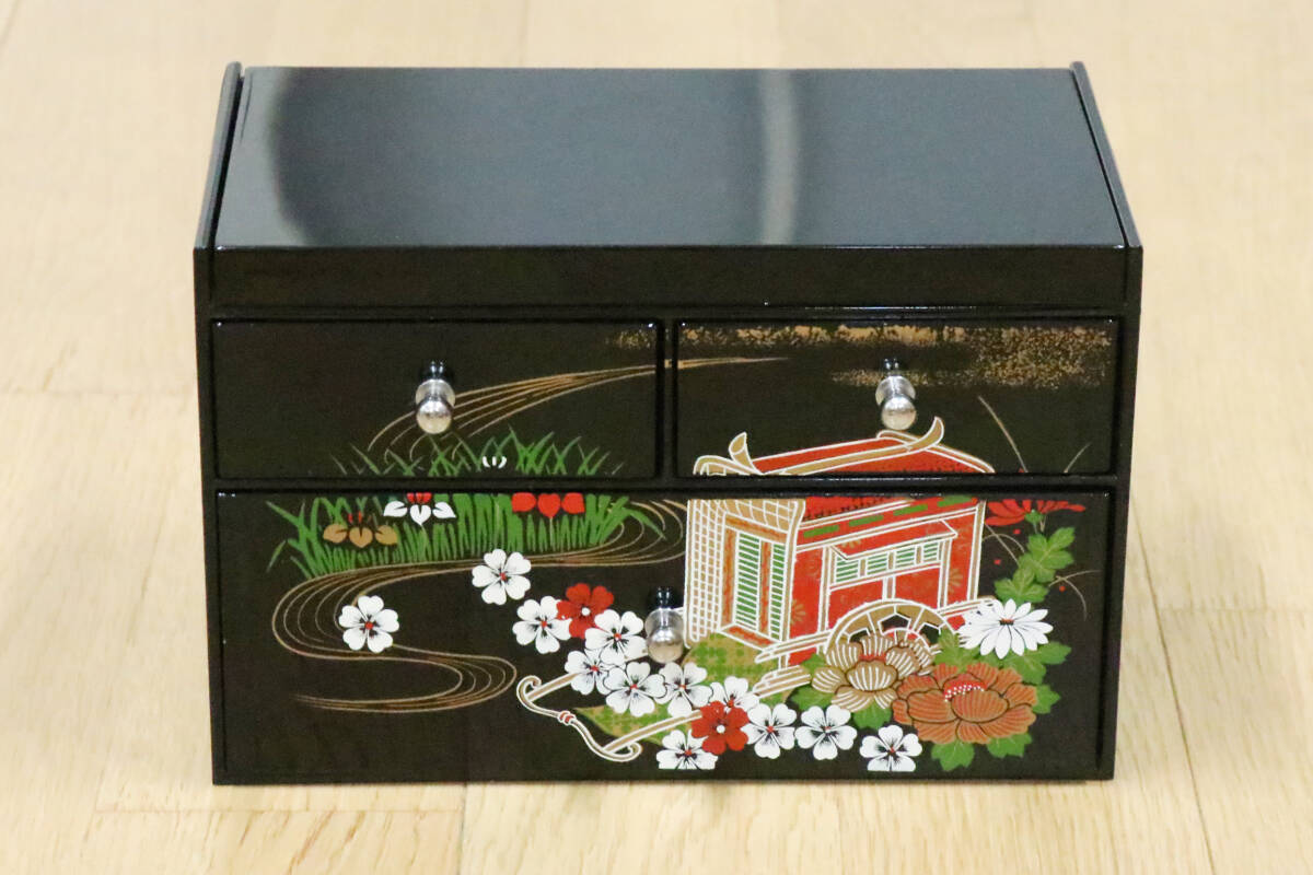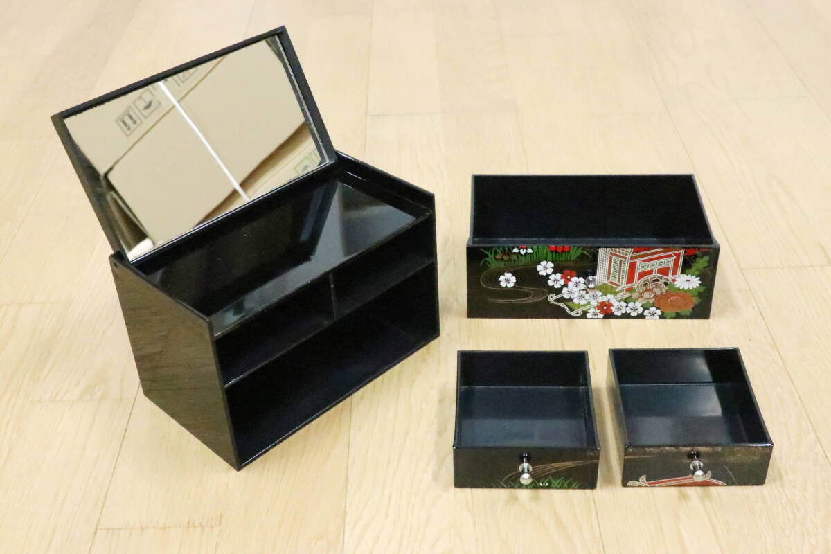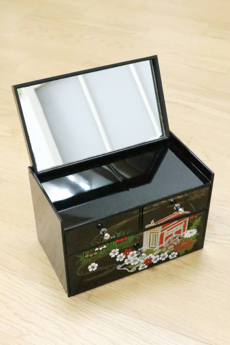 鏡付き小物入れ 2段 引き出し3つ 横19㎝×奥行き12㎝×高さ12㎝ 収納ケース 中古品 【商品説明必読】