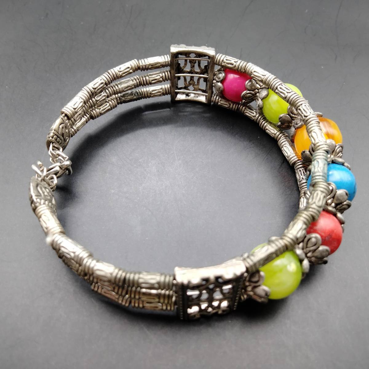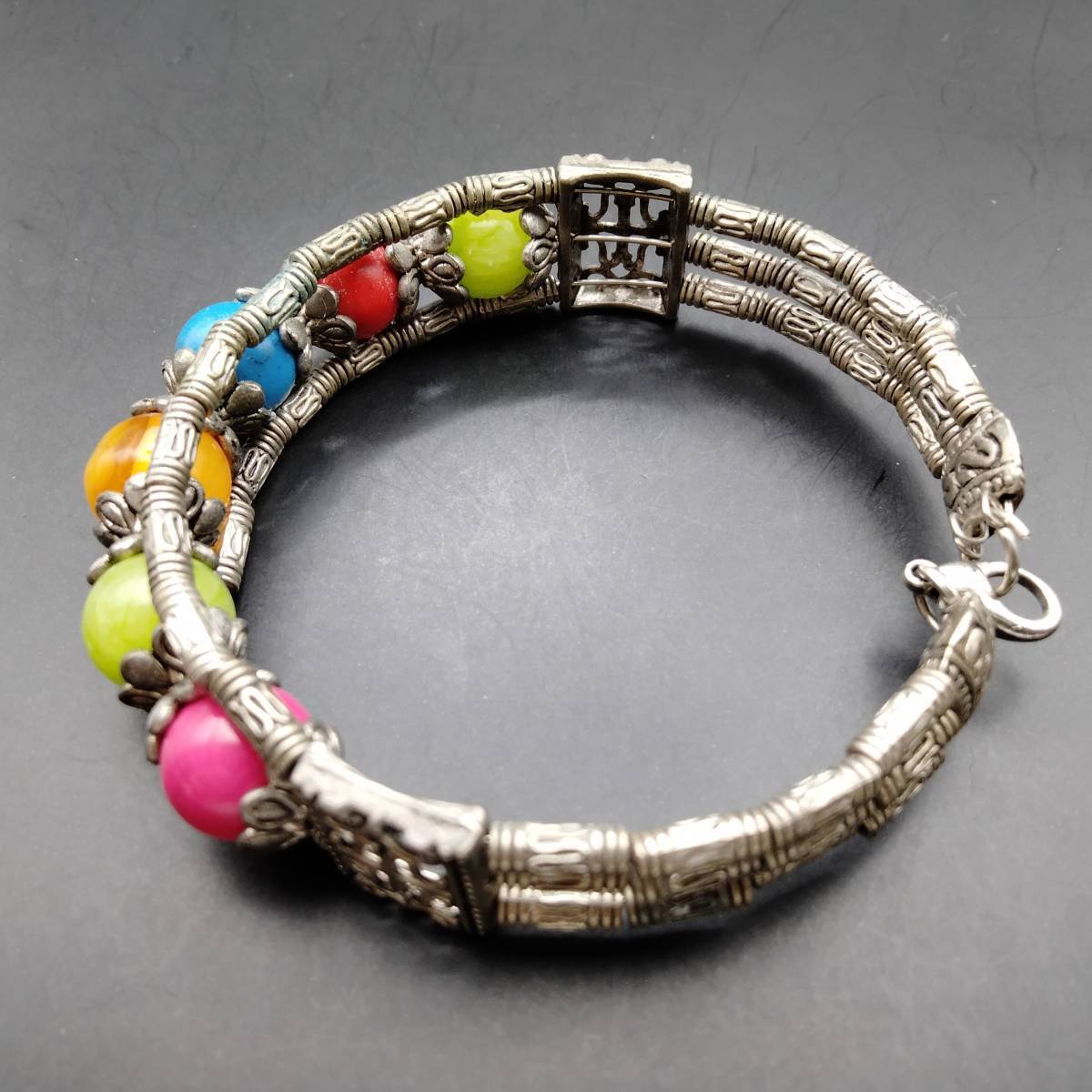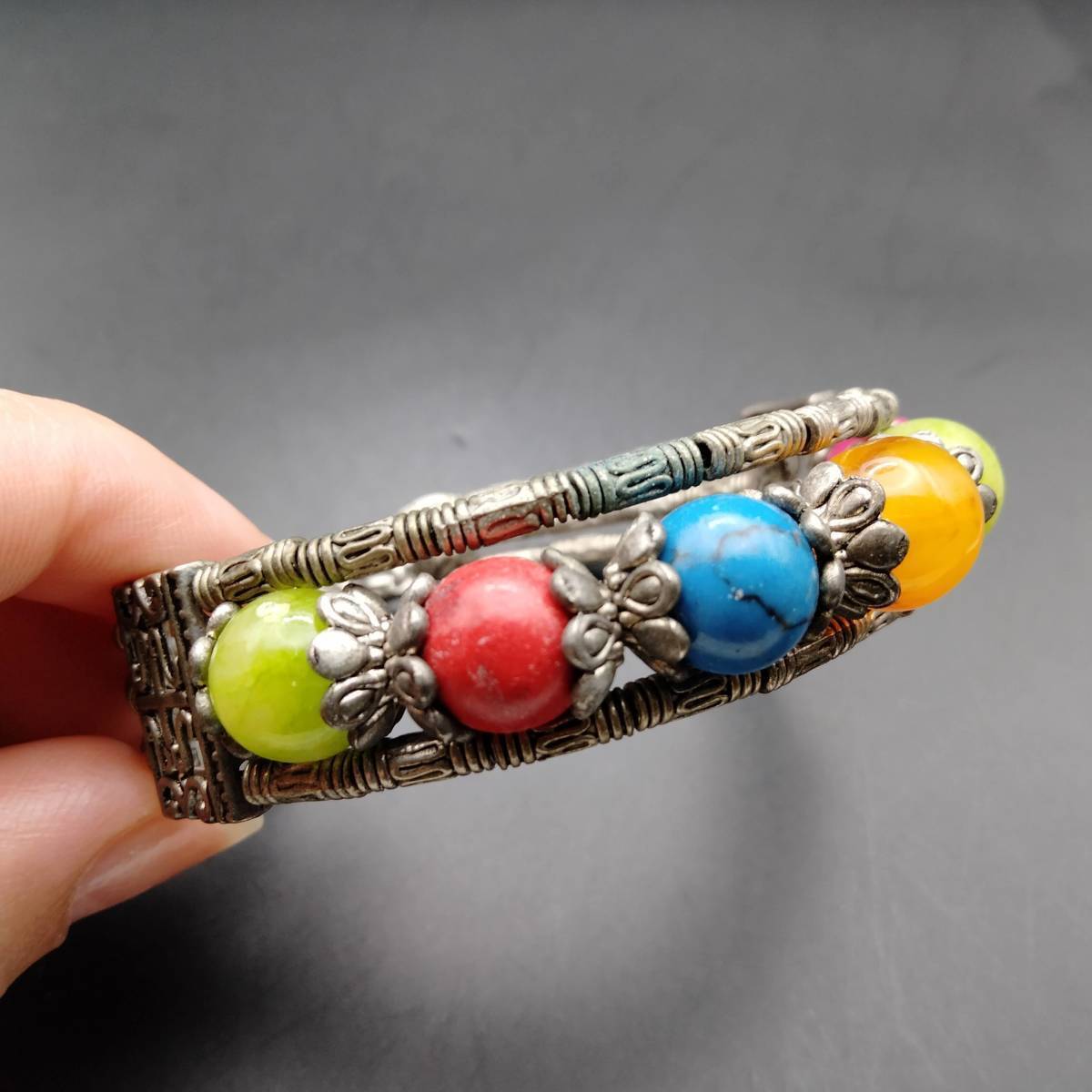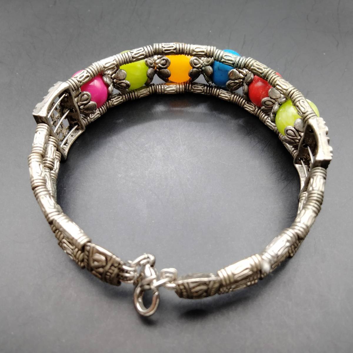 マルチカラー ボールチャーム エスニック調 ヴィンテージ ブレスレット バングル オープンワーク ファッションジュエリー SAE①
