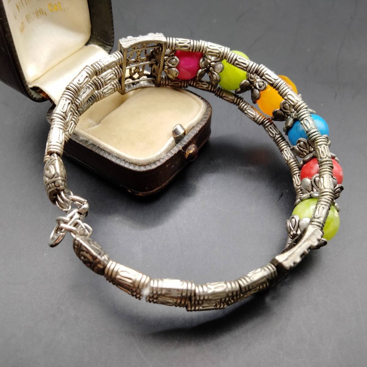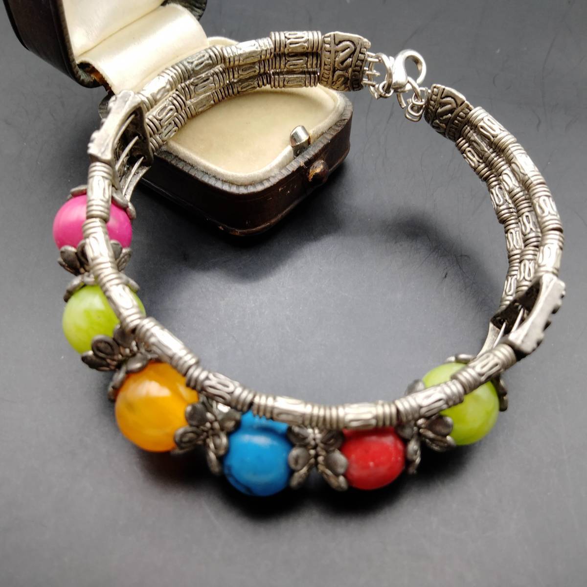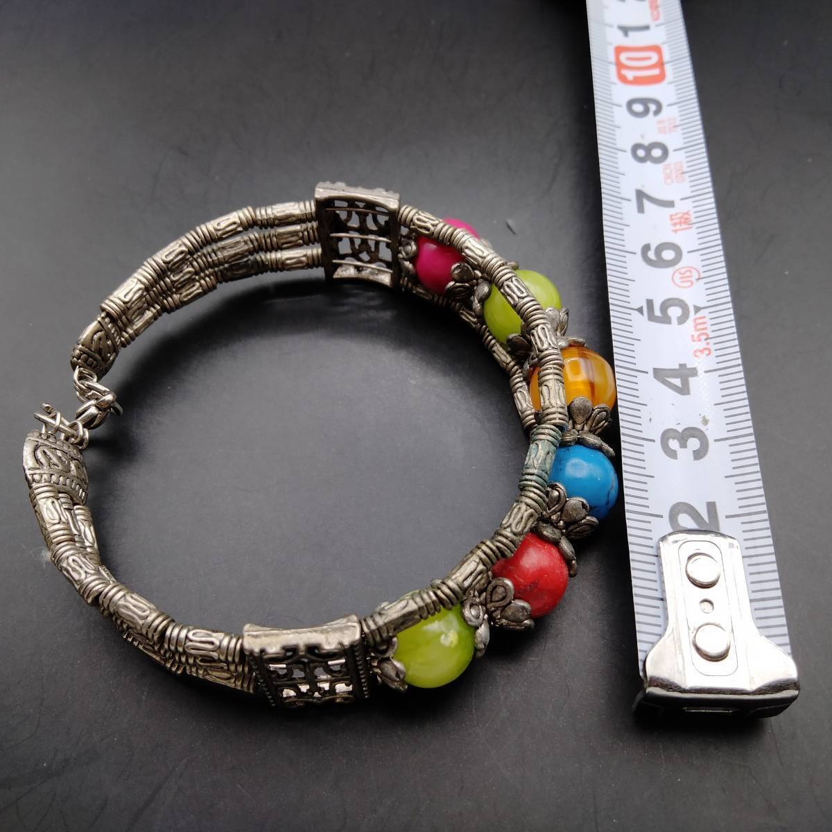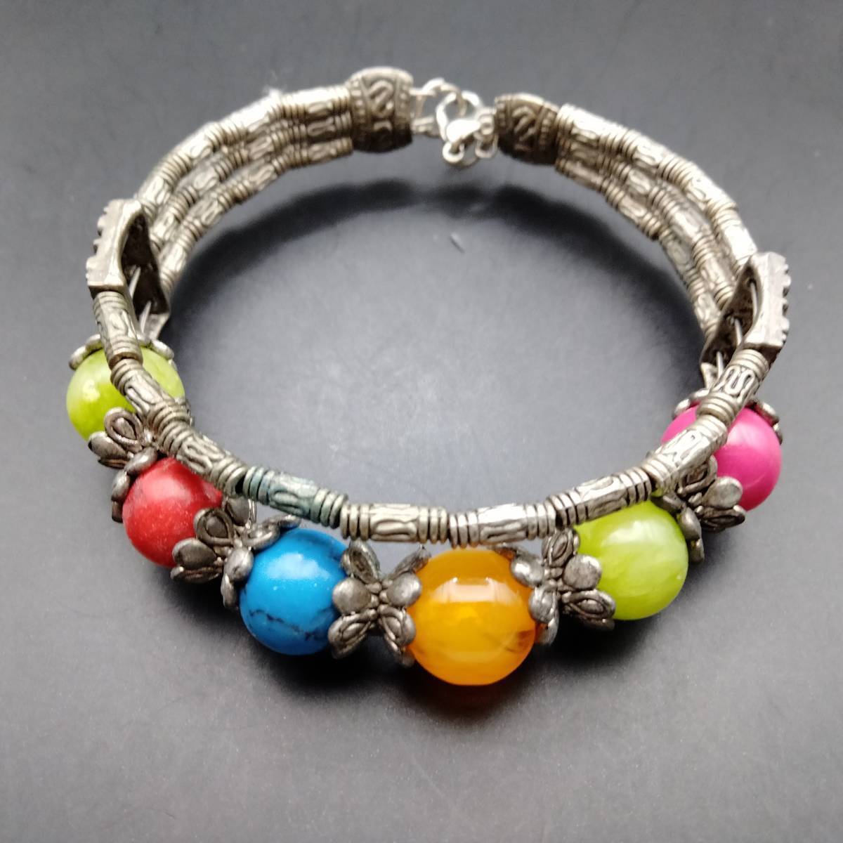 マルチカラー ボールチャーム エスニック調 ヴィンテージ ブレスレット バングル オープンワーク ファッションジュエリー SAE①
