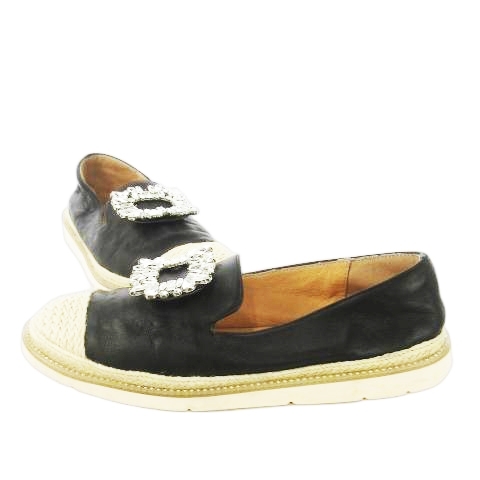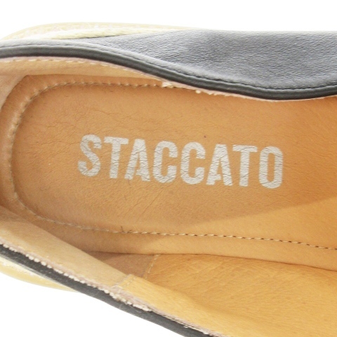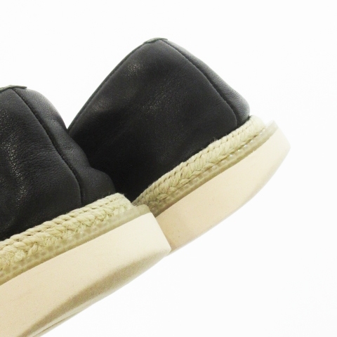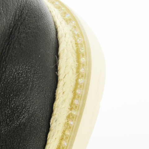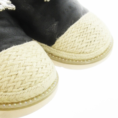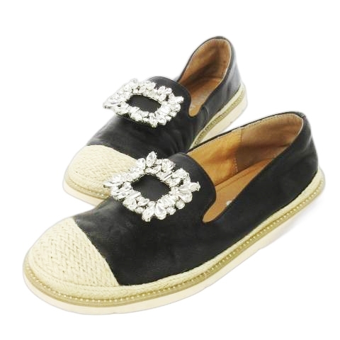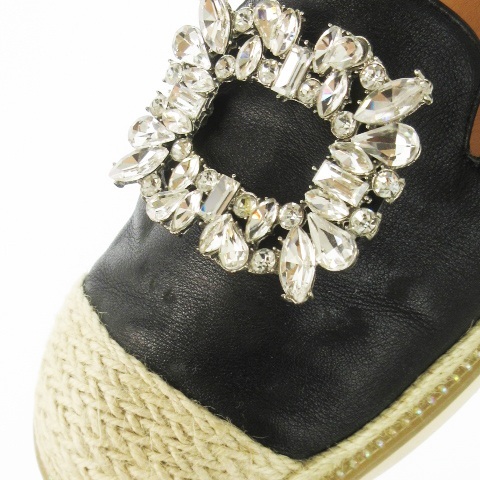 スタッカート STACCATO スリッポン スニーカー レザー 革 ジュート ラインストーン ビジュー 24.0cm 黒 ブラック /CK15 レディース