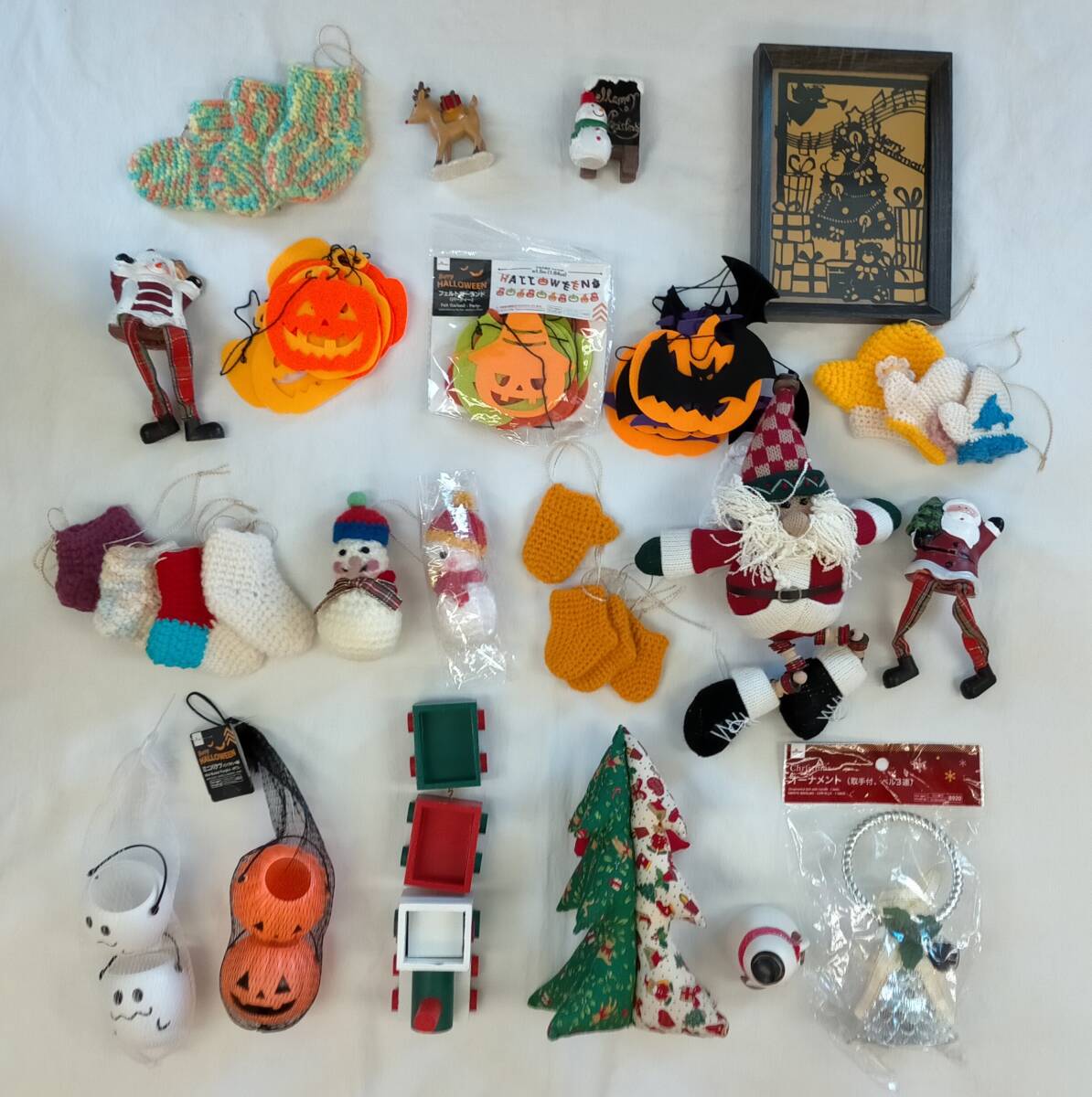 【佐川発送】 メーカー複数 ハンドメイド作品も含む ハロウィン・クリスマスグッズ21種33点まとめ売り オーナメント ガーランド