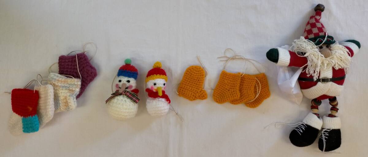 7 クリスマスオーナメント毛糸ミニ靴下/メーカー不明/①赤、水色、白②白③水色、黄、茶、白④紫