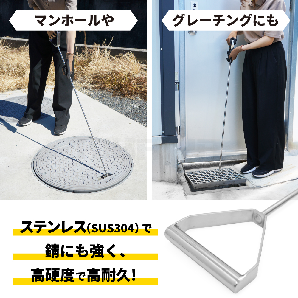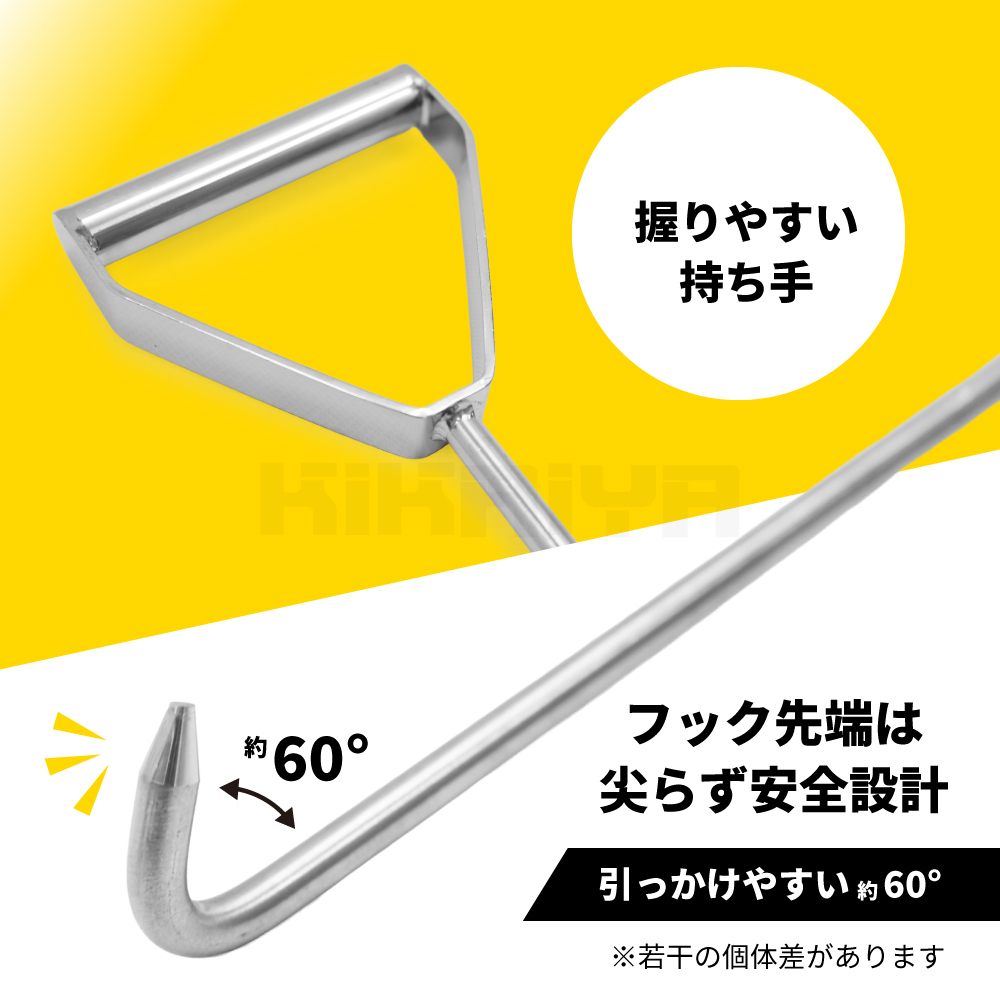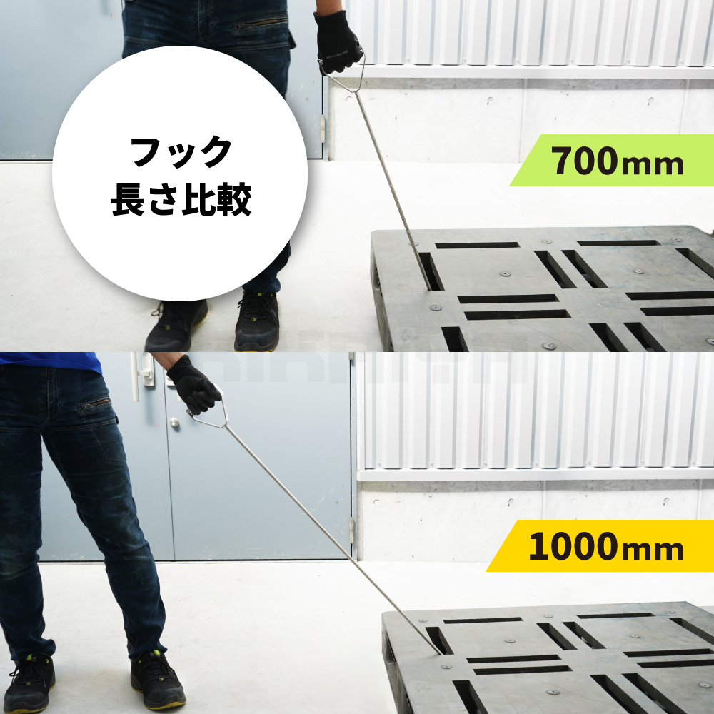 ●パレットを引っ張る時に便利なフックの付いた引っ張り棒です ●奥にある物も取り出す時やしゃがまないといけない時の負担を軽減します ●材質は水に強く錆にくいステンレス(SUS304)を使用しています |