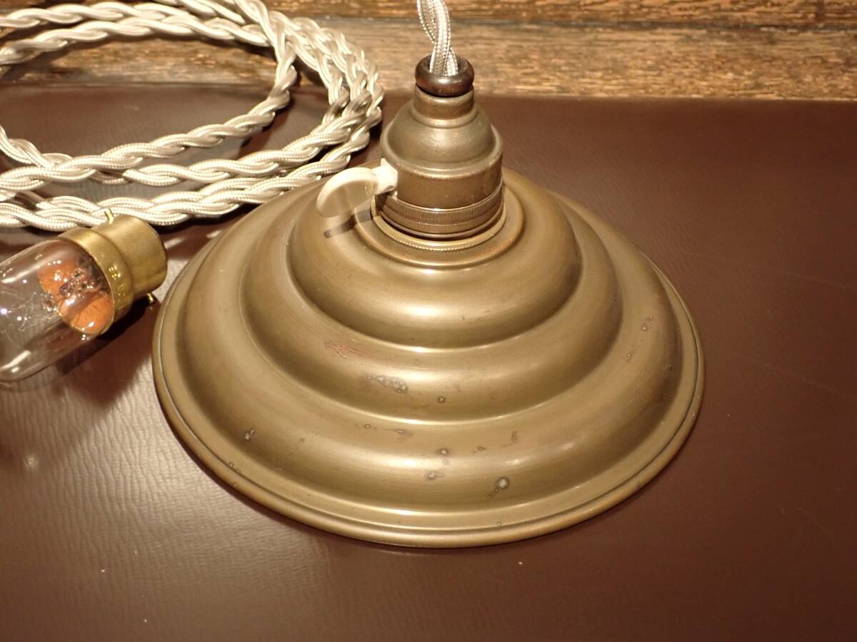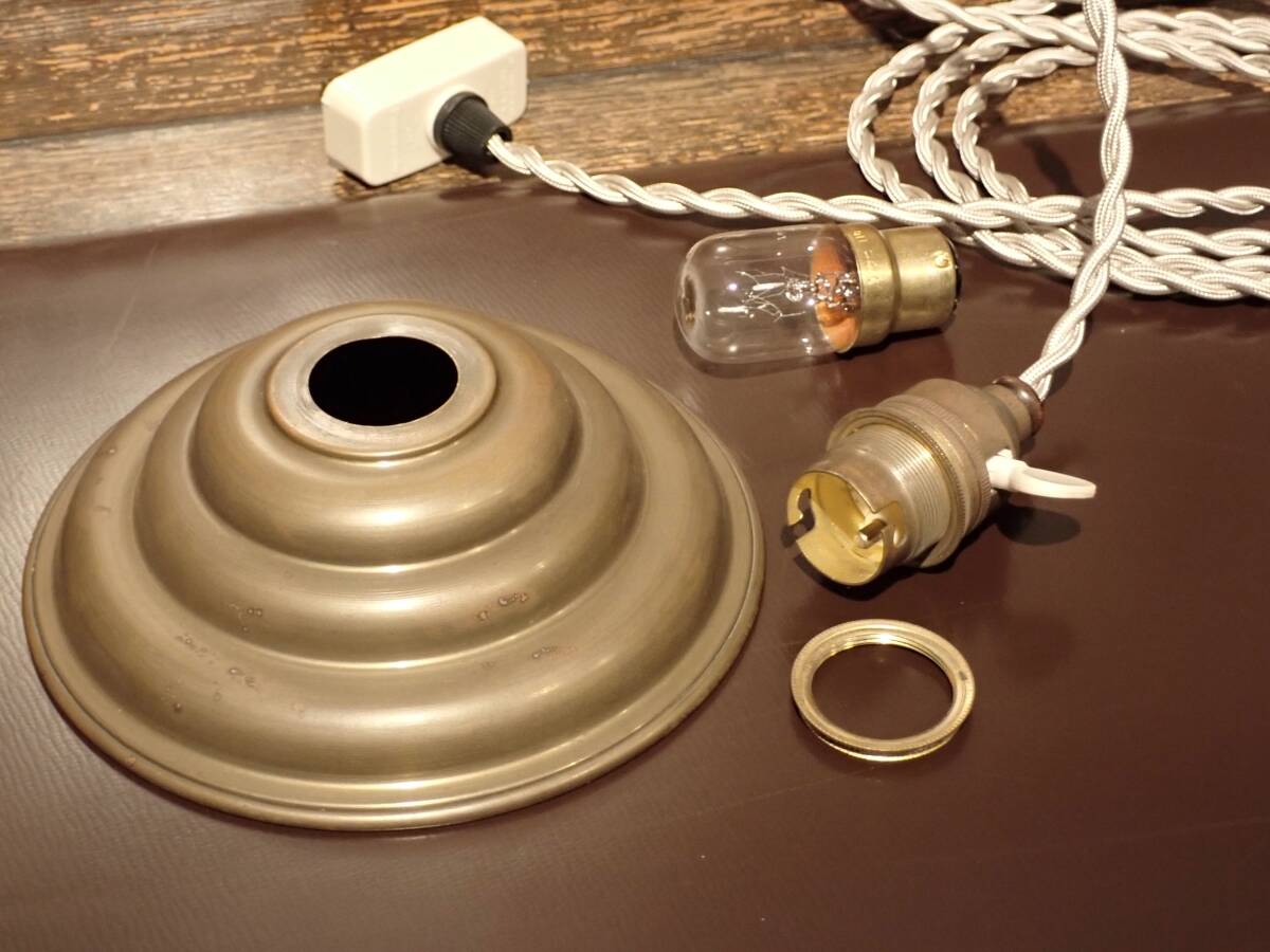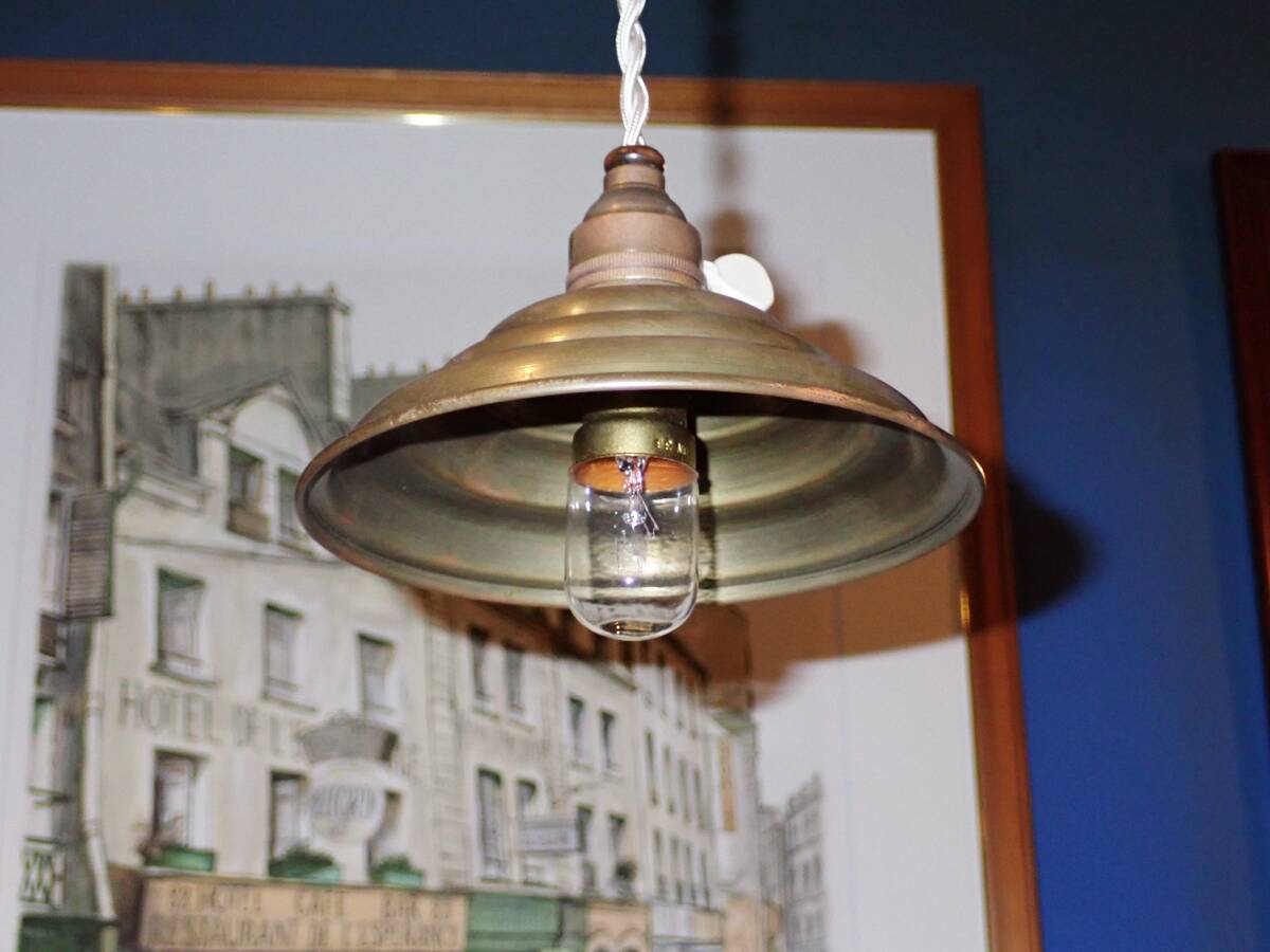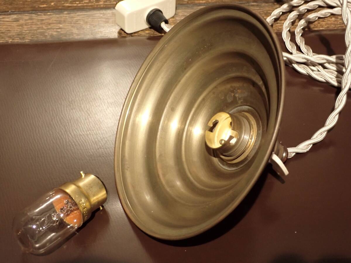 ♪即決、フランス製アンティーク、真鍮製シェード付きアトリエ・ペンダントA、 B22電球仕様 真鍮製ソケット (B-93 |