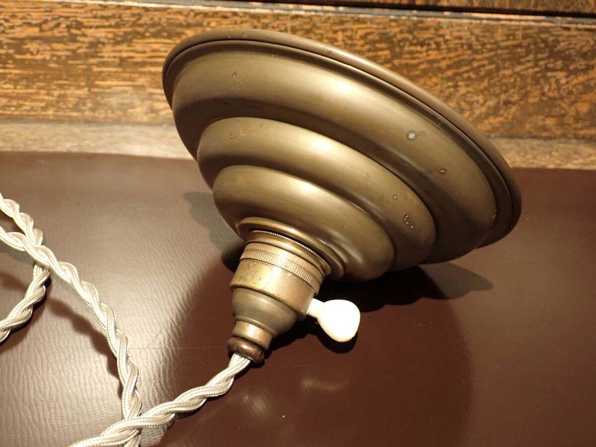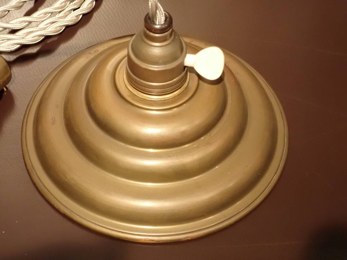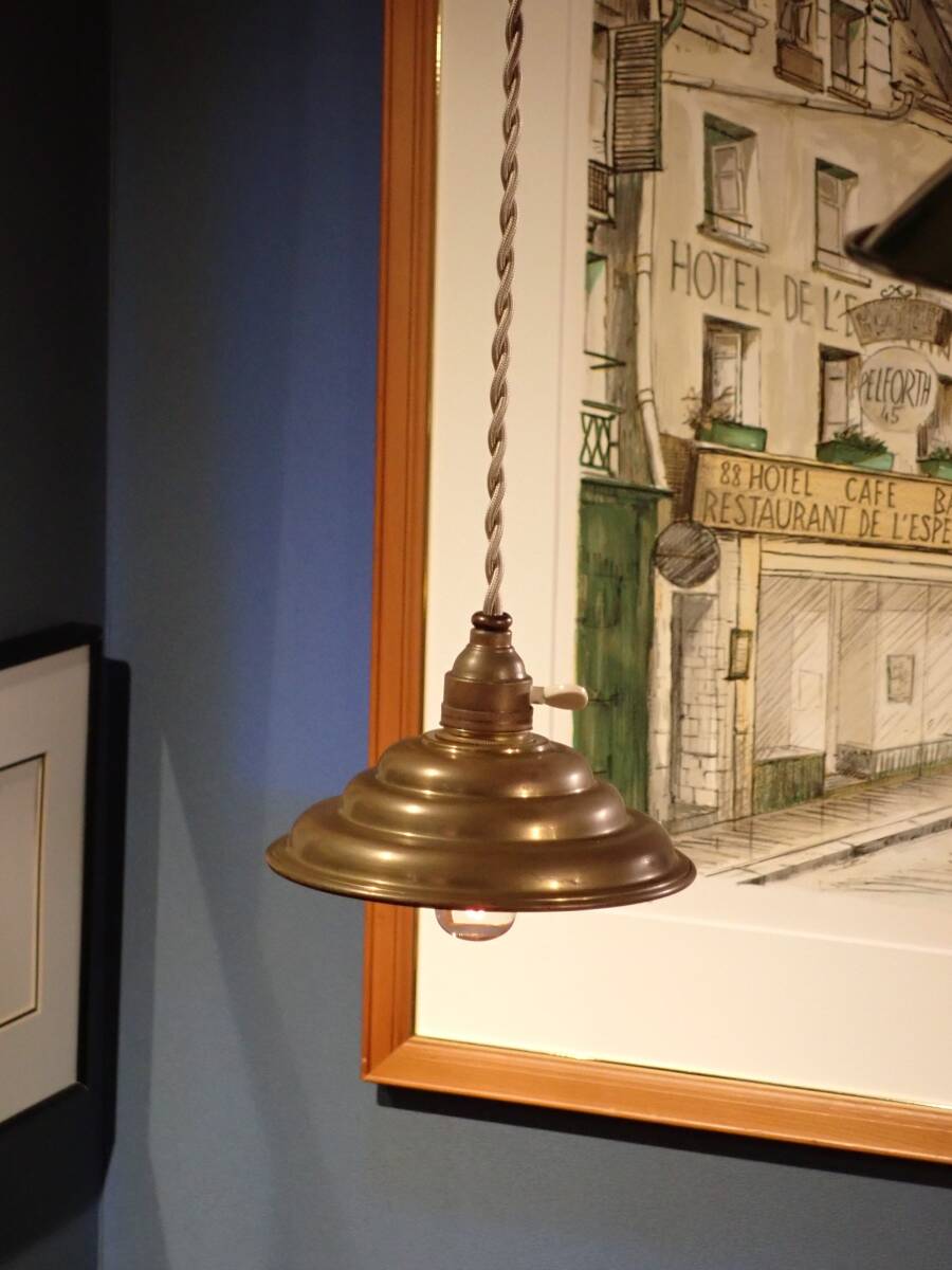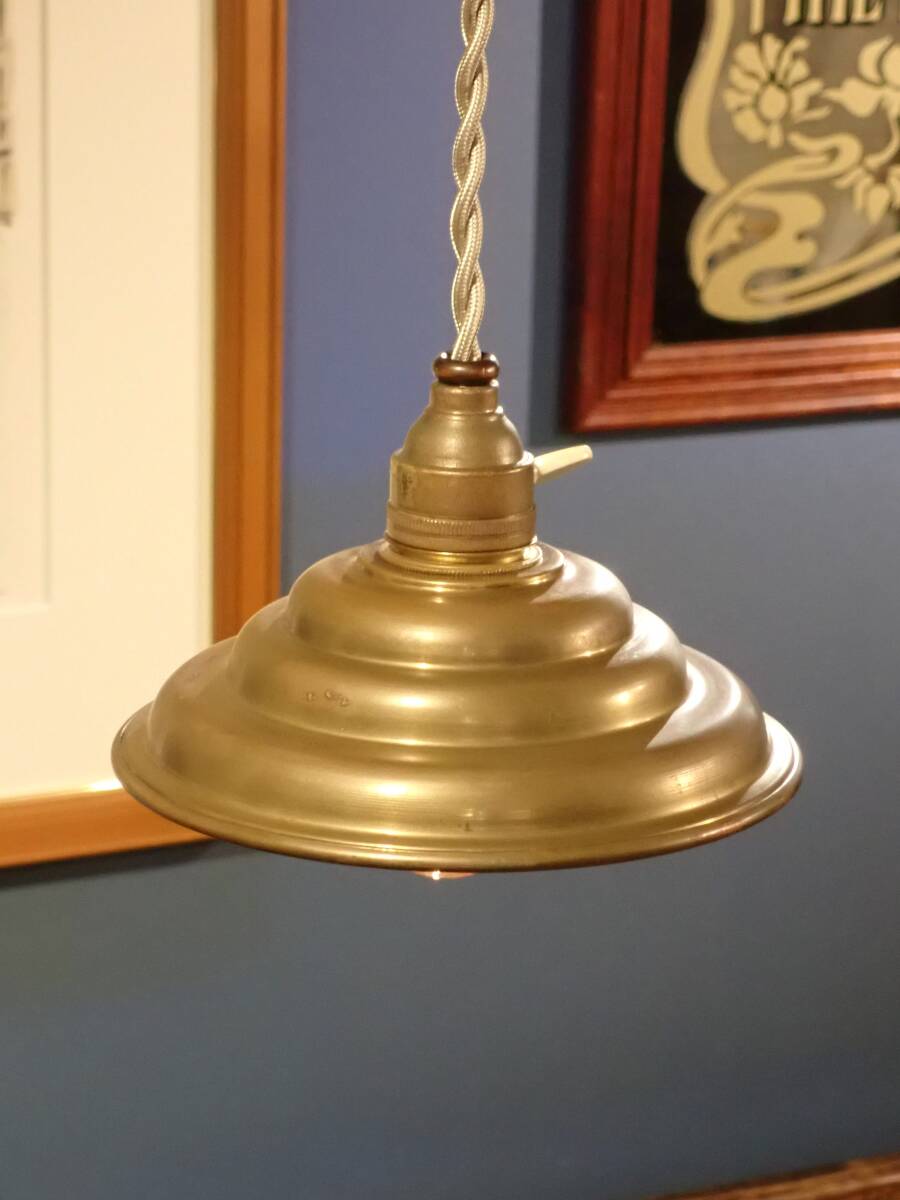 ♪即決、フランス製アンティーク、真鍮製シェード付きアトリエ・ペンダントA、 B22電球仕様 真鍮製ソケット (B-93 |