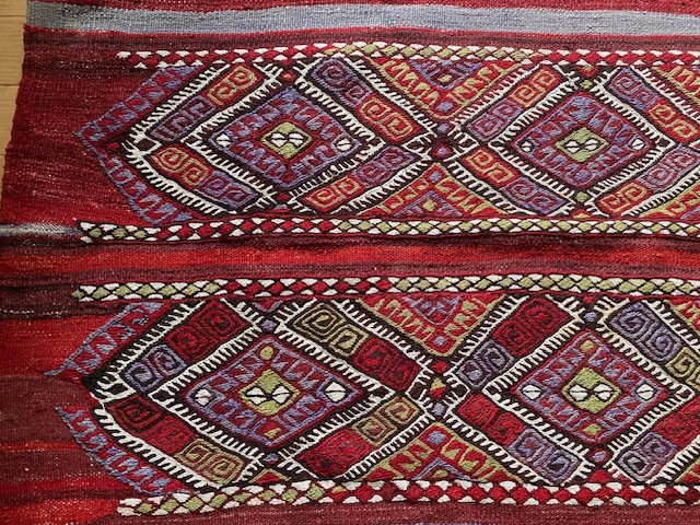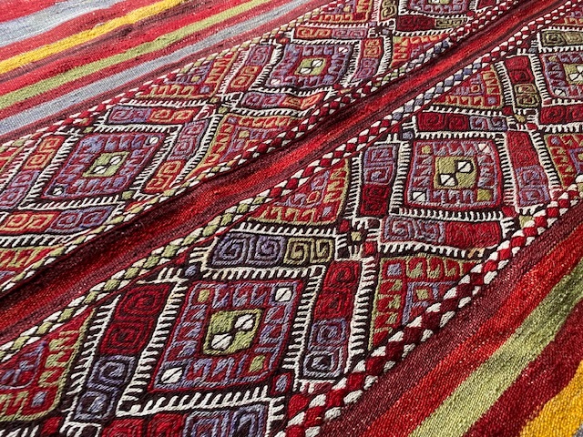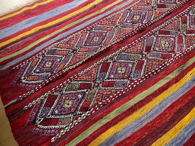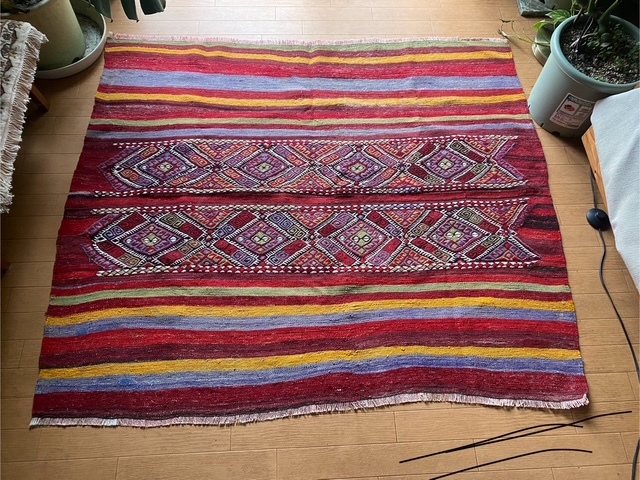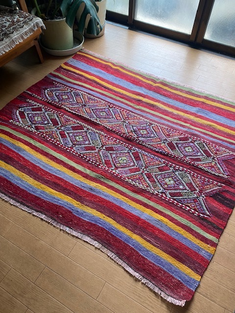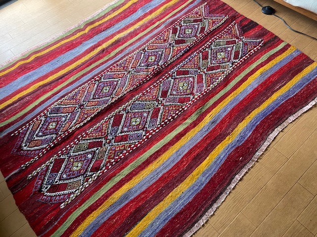 素晴らしいキリム、かなり大きさも重さもあるので ラグとしても重宝しそうです。