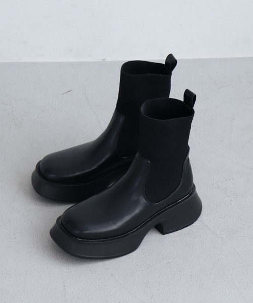 参考商品名:【EVOL】スクエア厚底ストレッチニットブーツ IV5216
