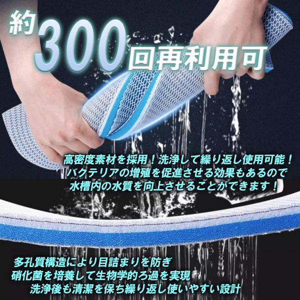 高密度素材を採用しており、洗浄して繰り返し使用可能で、バクテリアの増殖を促進させる効果もあるので、水槽内の水質を向上させることができます。