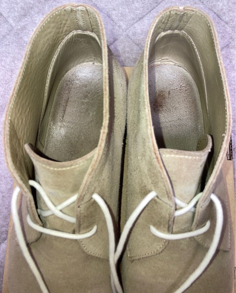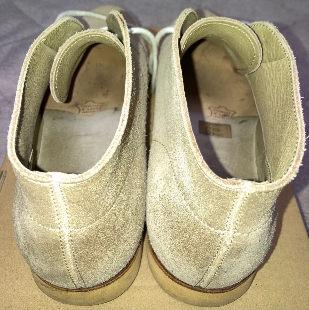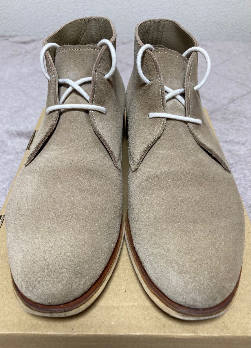 サイズはUK6.5(25.0cm相当)、アッパーはグレーのスエード、アウトソールはラバーソール(NATURE ソール)です。