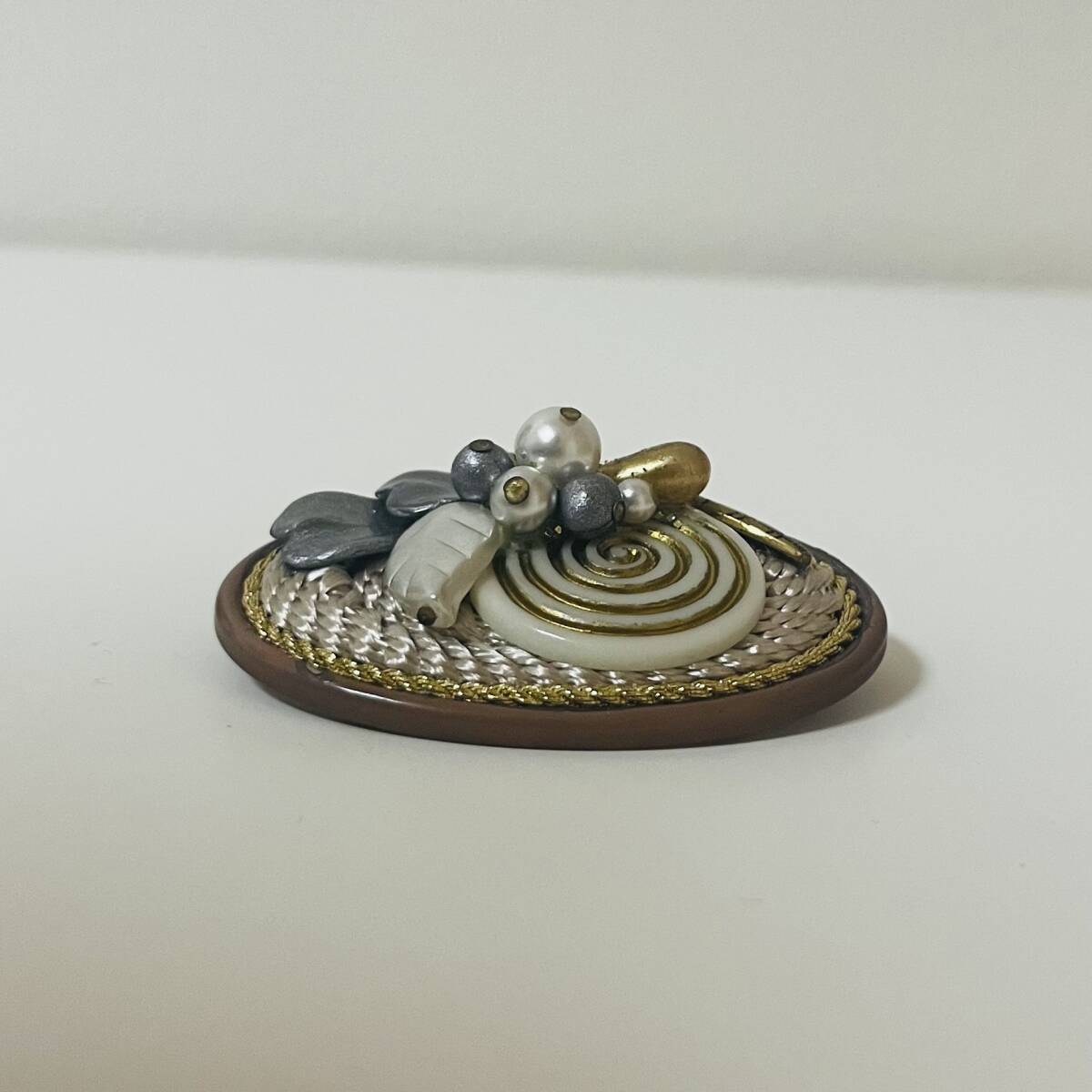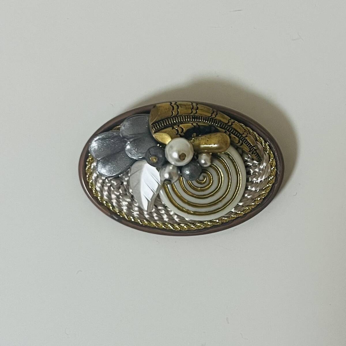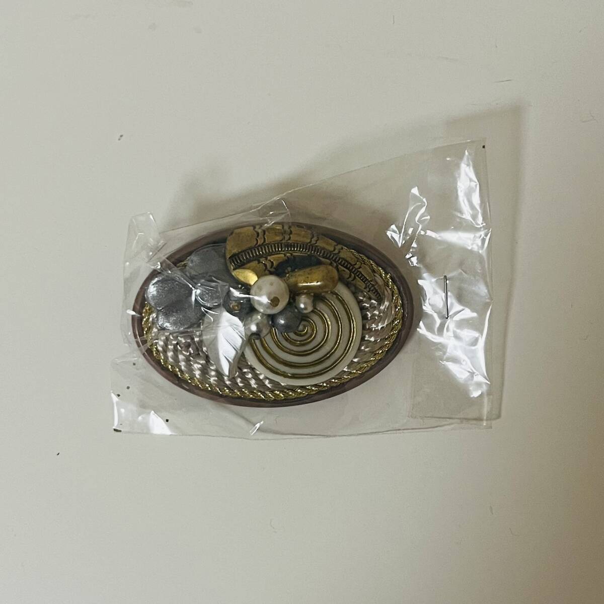 278 アンティーク ビンテージ アクセサリー ブローチ 未使用保管品!ゴールドカラー パール調 オーバル 海外製