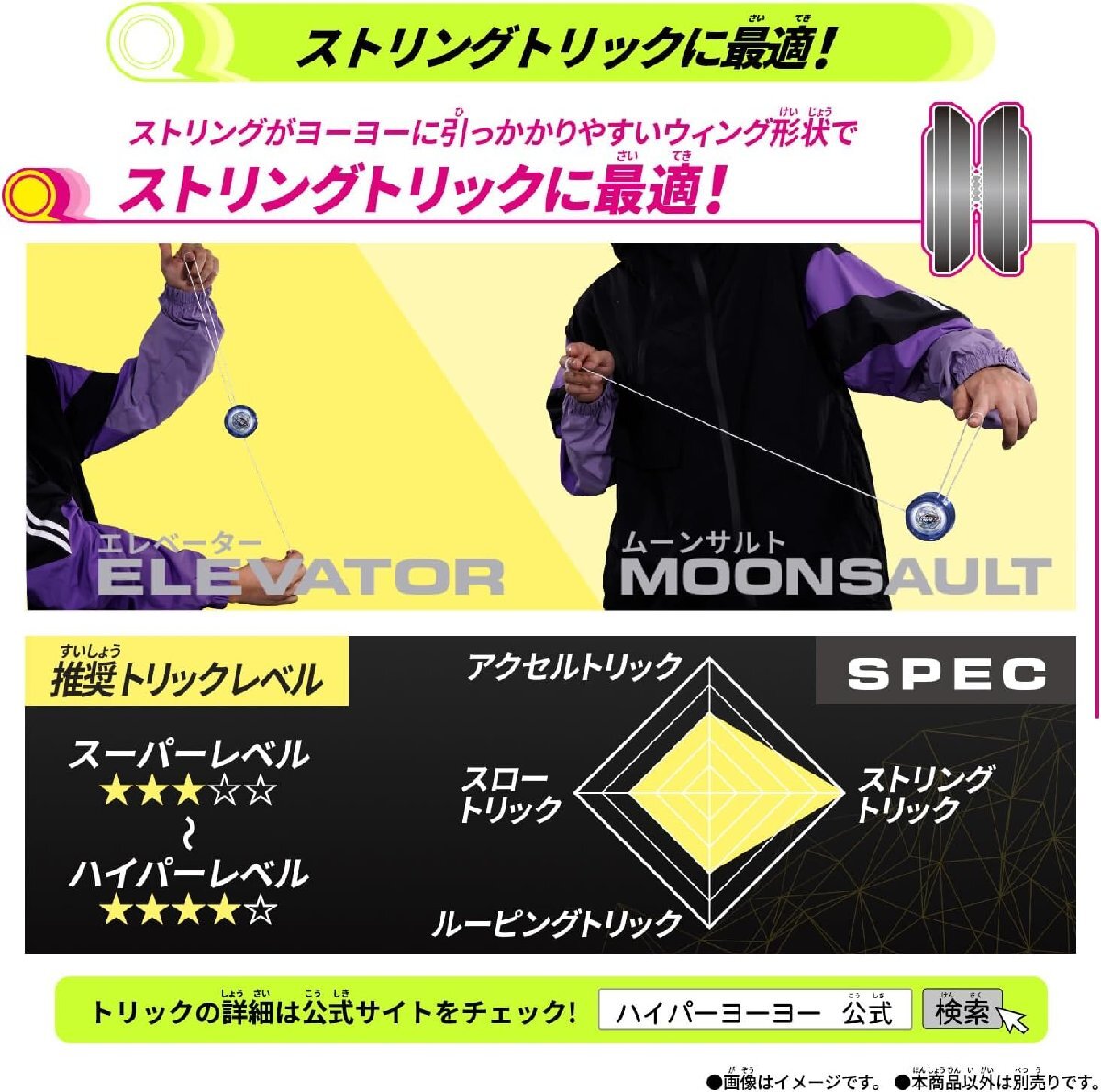 ・本体を手に持った状態でストリングを勢いよく引くことで、本体を投げずに高速回転させることができる日米で特許出願済の新機能「アクセルシステム」を搭載したハイパーヨーヨーシリーズです。