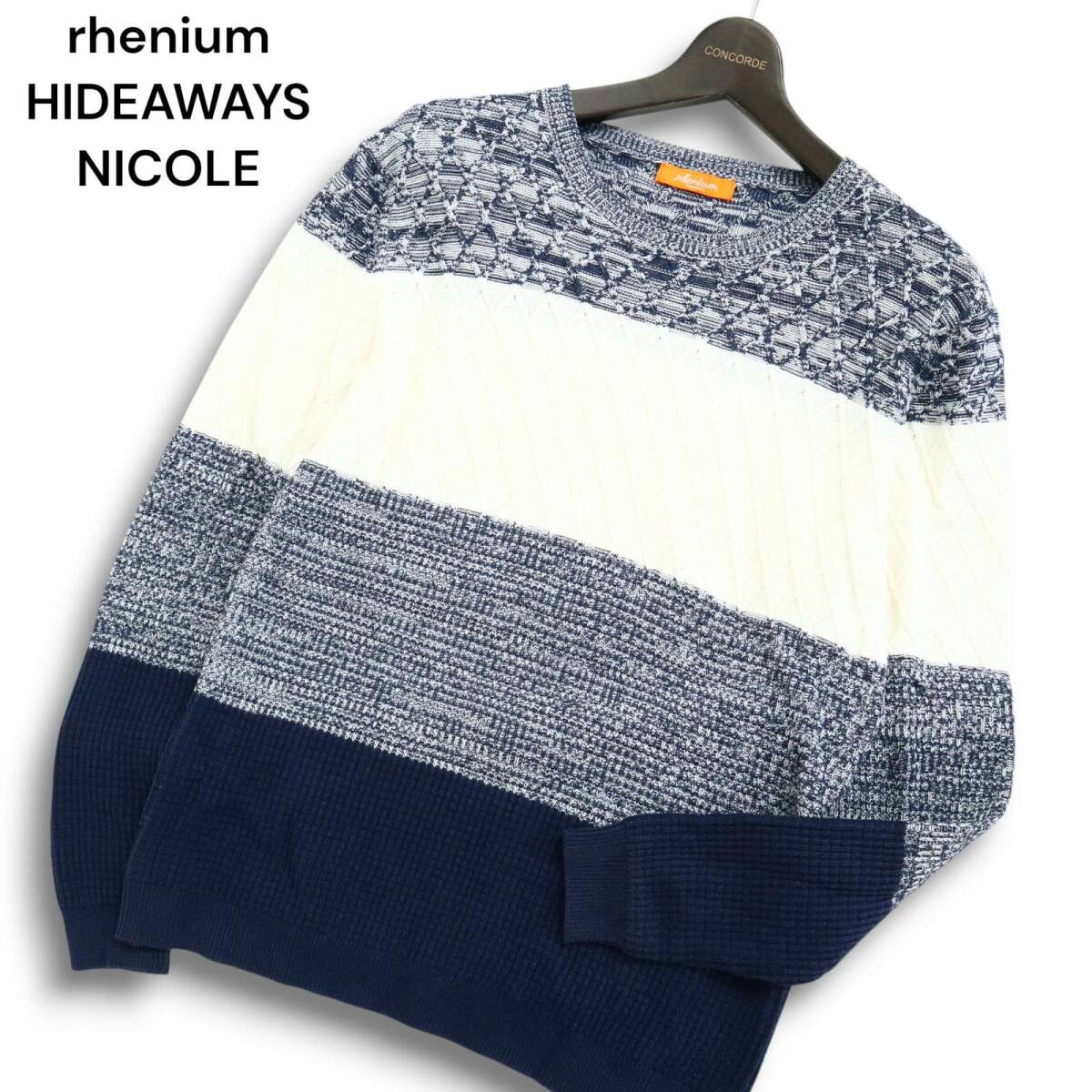 rhenium HIDEAWAYS NICOLE ハイダウェイ ニコル 秋冬 カラーブロック★ クルーネック ニット セーター Sz.46 メンズ 紺