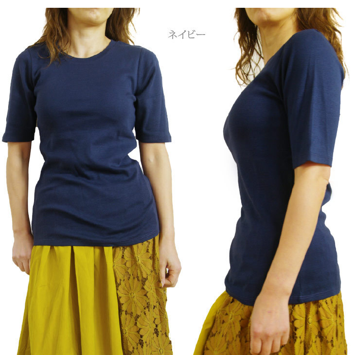 LL 紺 5分袖 Tシャツ カットソー レディース コットン 綿 定番 無地 新品