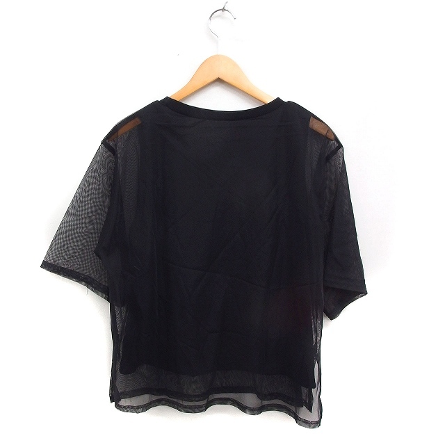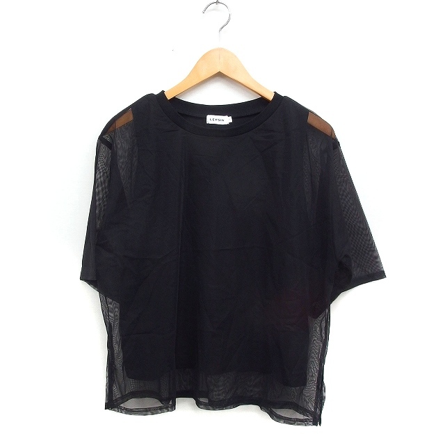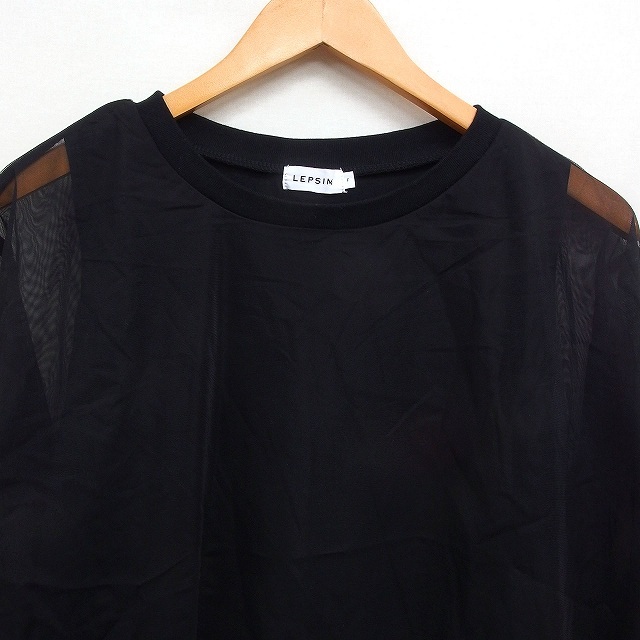 レプシィム ローリーズファーム LEPSIM LOWRYS FARM チュール レイヤード カットソー 5分袖 丸首 無地 F ブラック 黒 /FT19 レディース