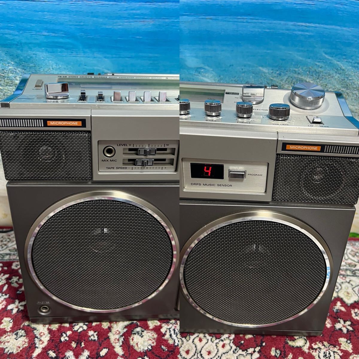 カセット部は、駆動ゴムベルト等全3本新品交換及び、各部機能フルメンテナンス済み(ヘッド,ローラー清掃、駆動メカ部分再グリースアップなど)で、テープ走行はしっかりしています。テストは120分テープで行っています、力強い走行です、録音再生、早送り巻き戻し、テープエンドでのストップ機能等正常作動です。DRPS9曲選曲機能OKです。ラインイン、アウト確認済み、マイクミキシングも確認済みです。電池BOX内部綺麗で電池での稼働はOKです。そのほか照明用ランプ点灯OK、針メーターしっかり左右均一にビンビン振れます。便利なテープスピード調整機能搭載で、0位置で標準スピード調整済みです。・・・・・・・・日立が誇る,,ワイドステレオ,,を是非聴いて見て下さい。・・・・・・全体部分、内部外部とも綺麗に清掃及び外装抗菌処理済みです。