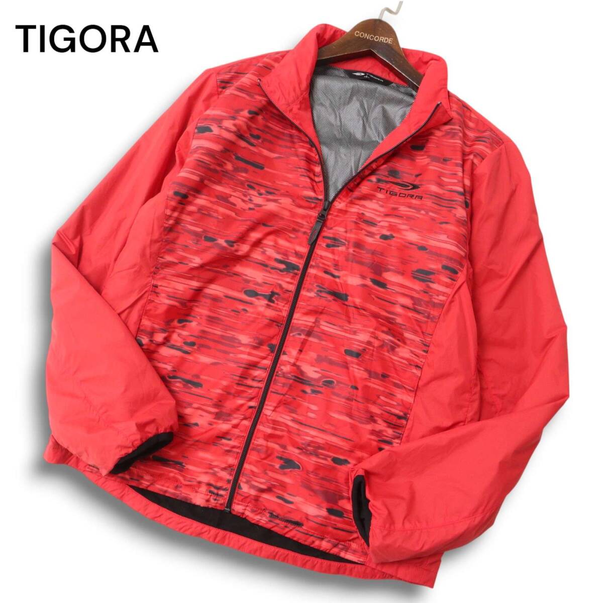 TIGORA ティゴラ 秋冬 裏起毛★ デザイン柄 切替 フルジップ ウィンドブレーカー ジャケット ブルゾン Sz.L メンズ ゴルフ