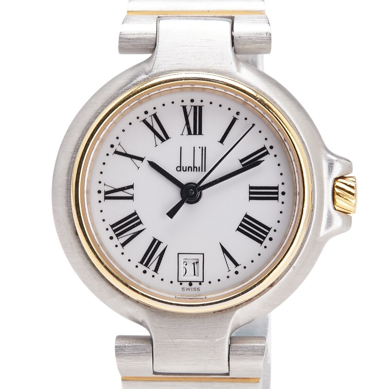 ダンヒル 腕時計 クオーツ ホワイト文字盤 ステンレススチール メッキ レディース Dunhill 【中古】