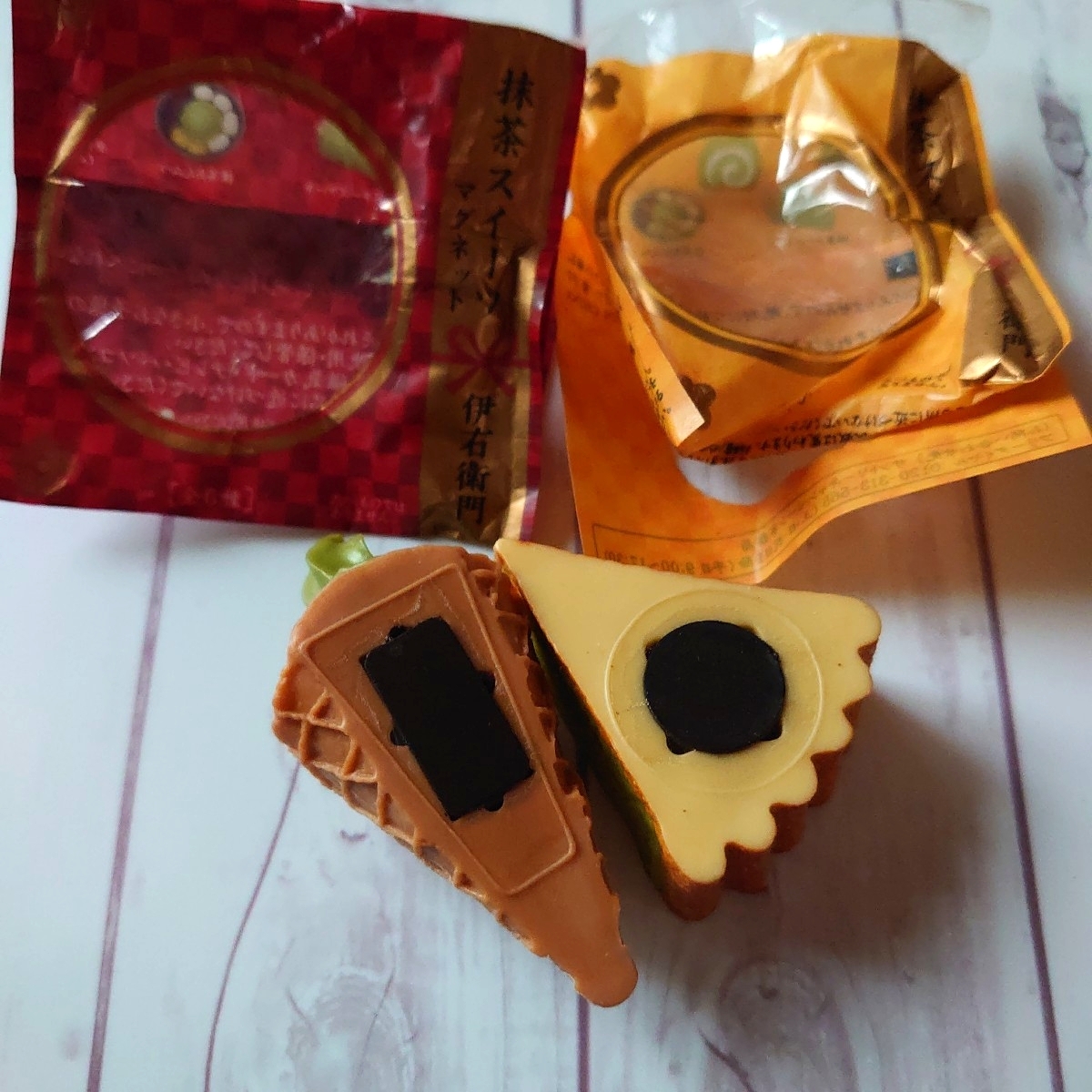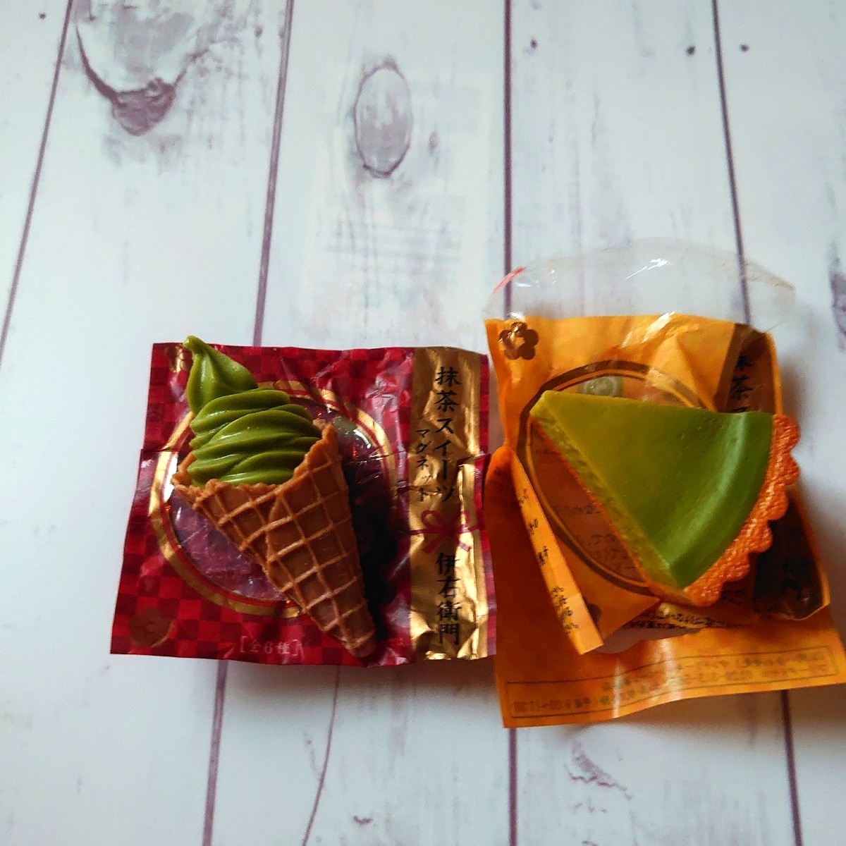 長期保管の伊右衛門の飲料オマケ、抹茶スイーツのマグネット2個セットです。