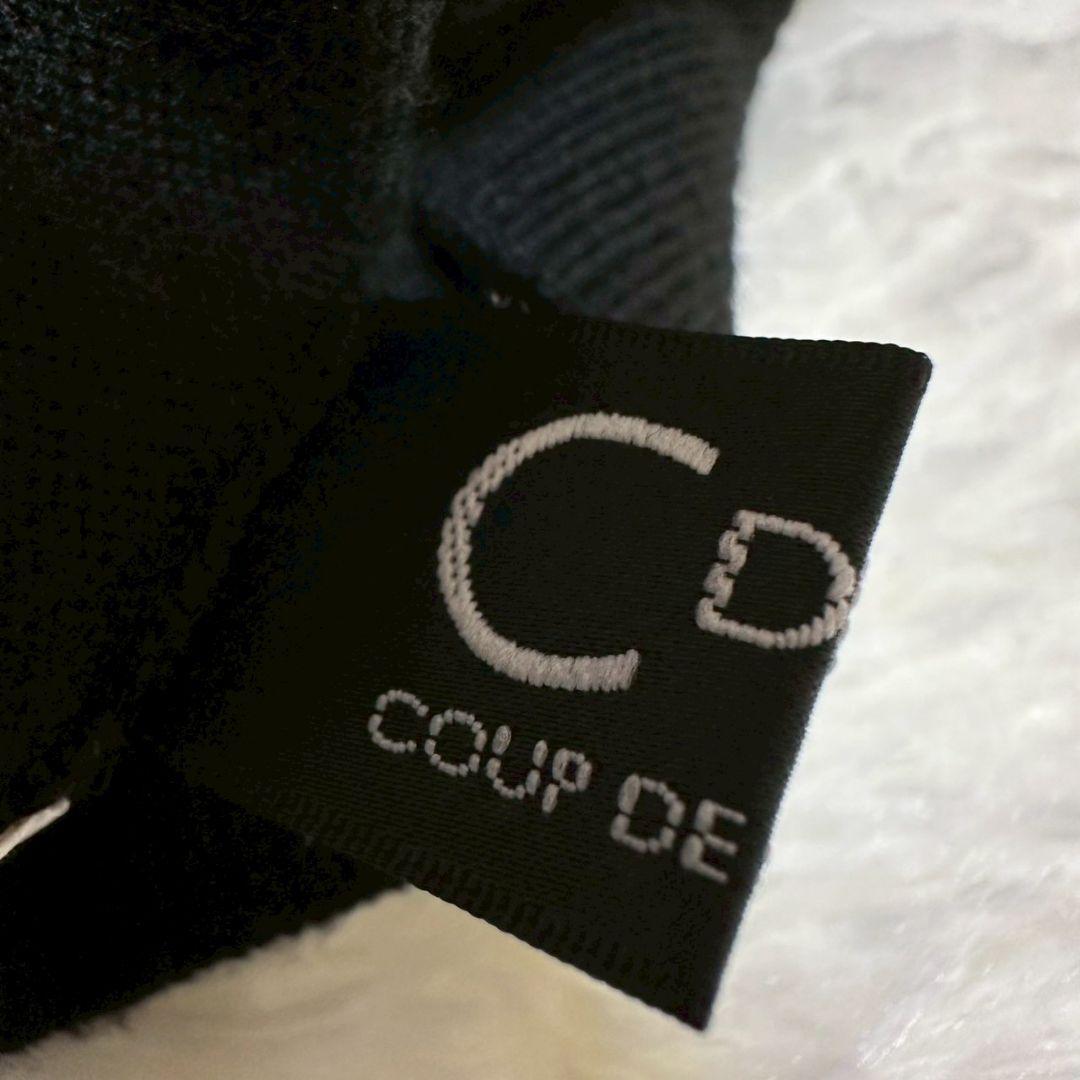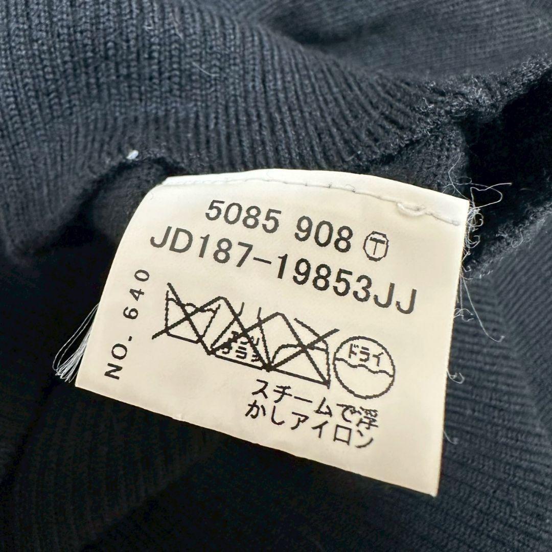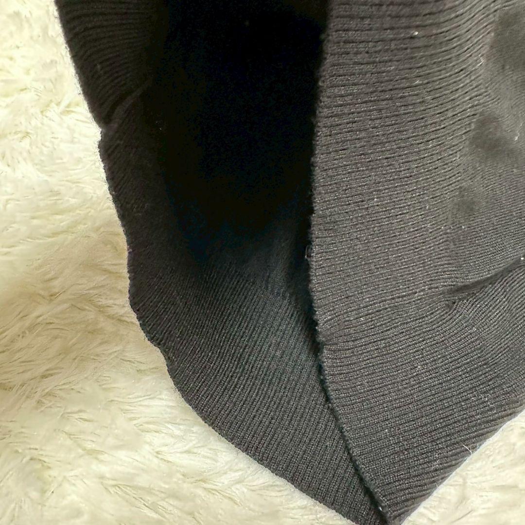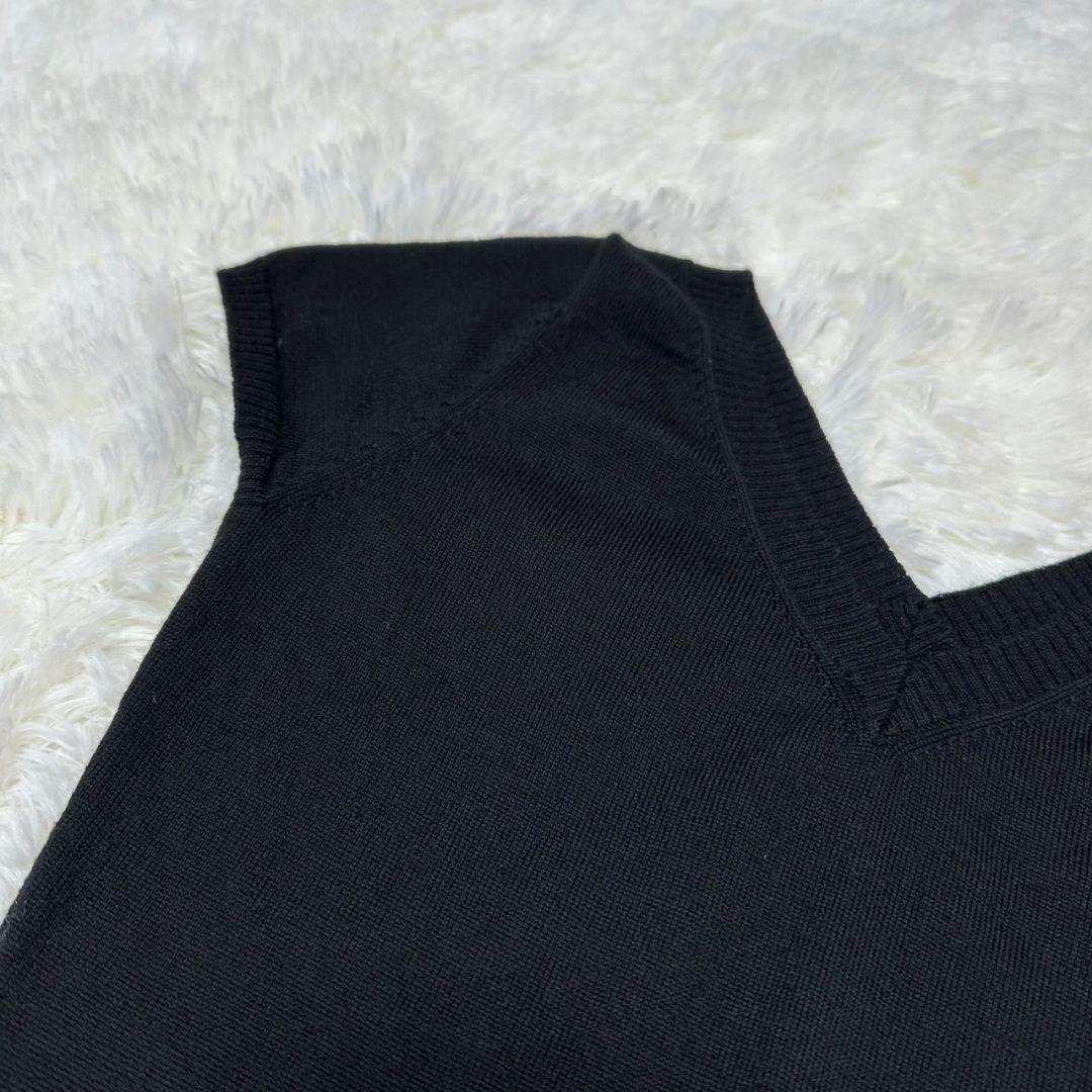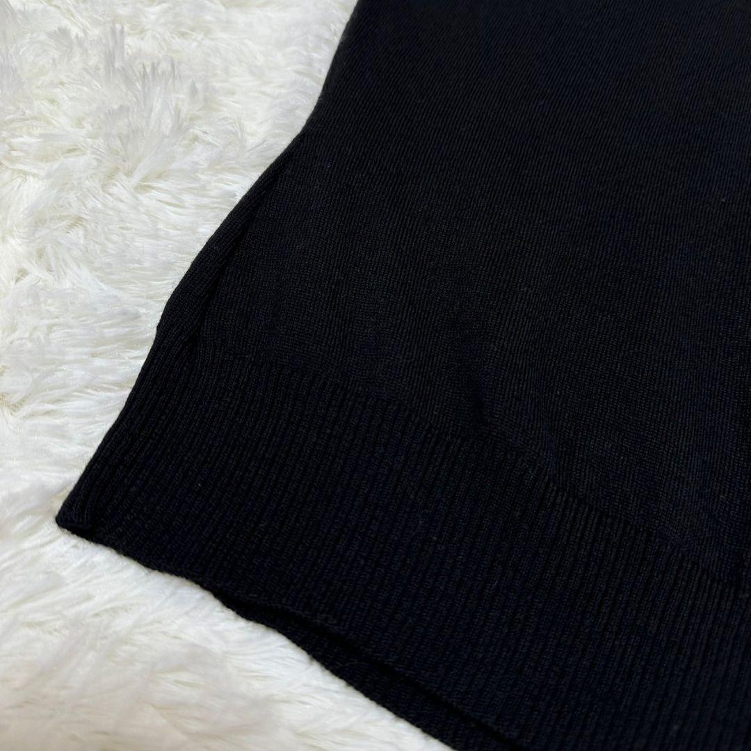 シンプルな黒のVネック半袖ニット、リブ編み裾でフィット感あり。