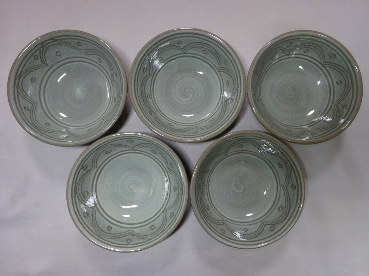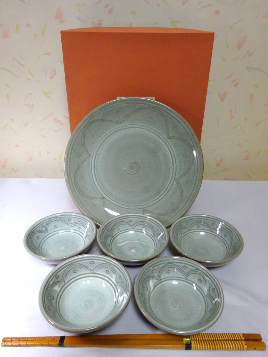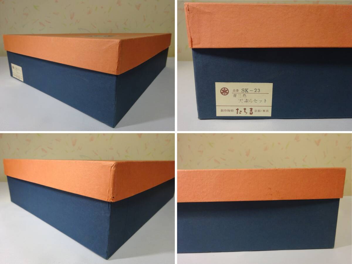 ★未使用★たち吉 青三島 天ぷらセット 大皿1枚 小鉢5個 菜箸1組★箱あり★レトロ 創作陶器 プレート 取り皿 和食器