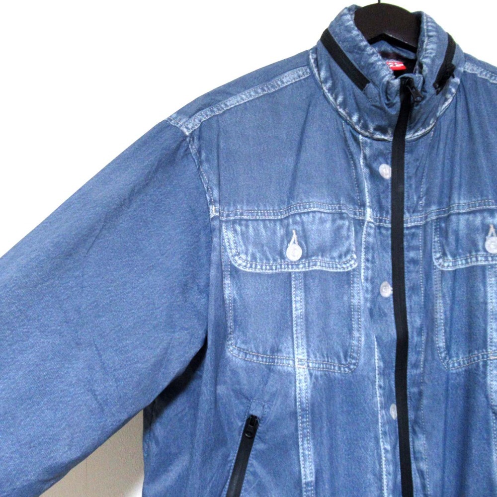 美品 DIESEL ディーゼル AUWT-TREVOR-HT19 デニム転写 トロンプルイユ ナイロン ジップアップジャケット S インディゴブルー