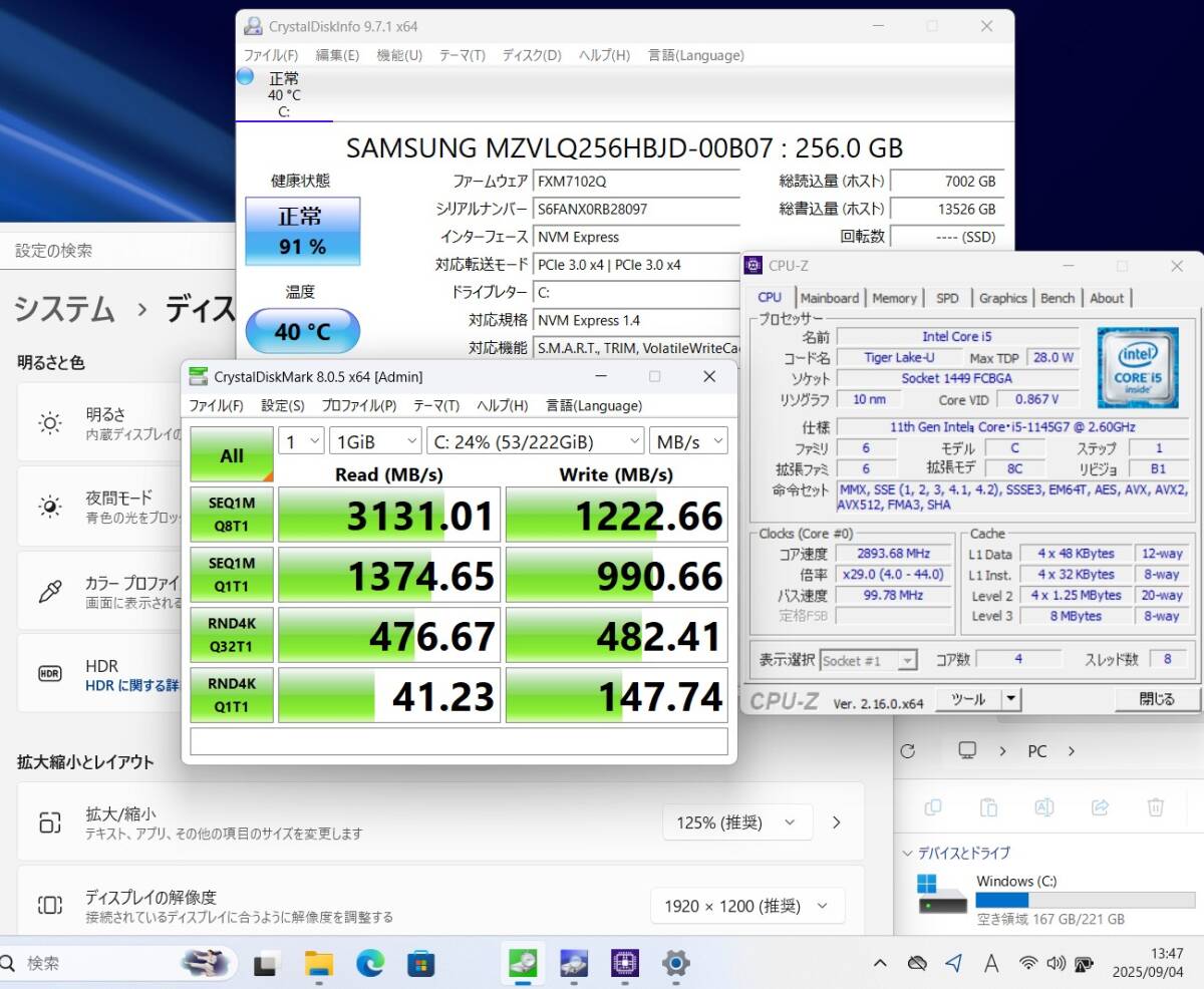 | CPU: 超高速 Intel 卓越性能 第11世代Core i5-1145G7 2.6Ghz、 4コア8スレッド (ターボ・ブースト利用時の最大周波数 4.4GHz) |